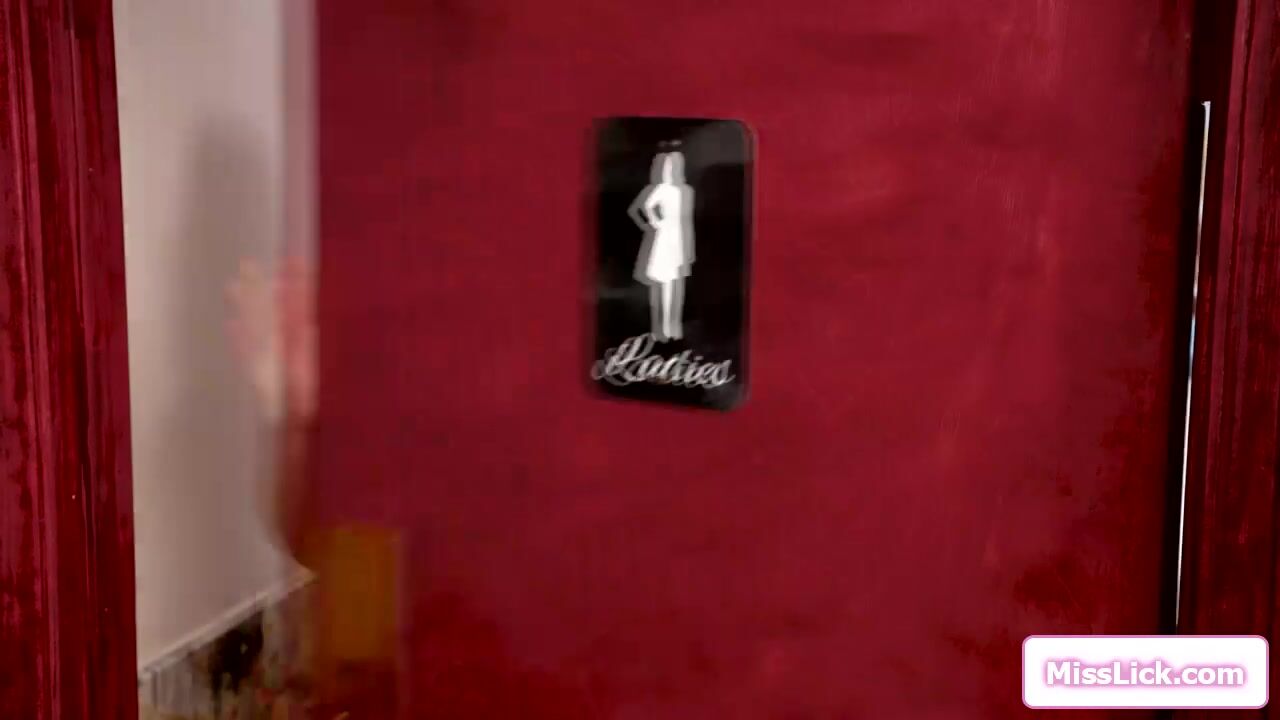 Milf licks a blonde in a public restroom