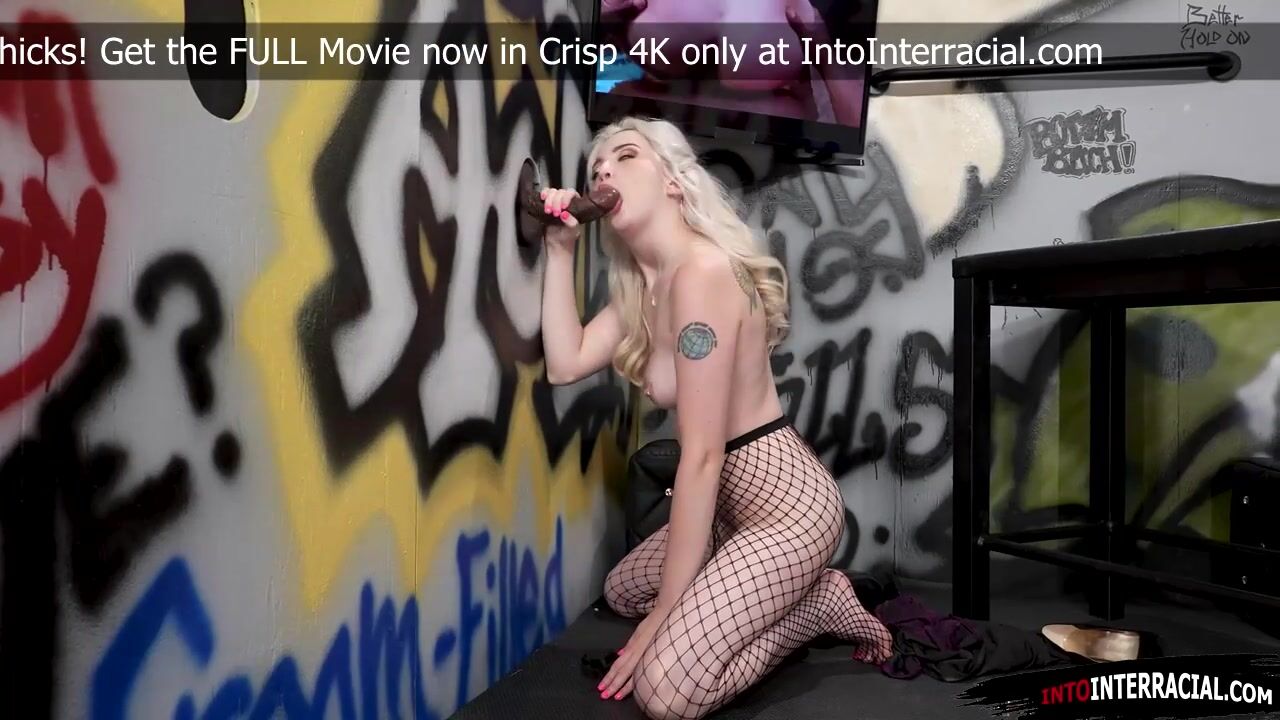 Horny petite Lexi Lore masturbates her shaved snatch when she sees a big black cock peeking through the gloryhole.The small tits blonde deepthroats the bbc.She rips open her fishnet stockings and shoves her wet tight bald pussy on the big dick