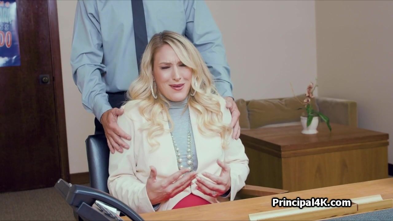 She wants to be the future sex ed teacher so the principal decides to put her skills up to a test. Right there on his big ass office desk!