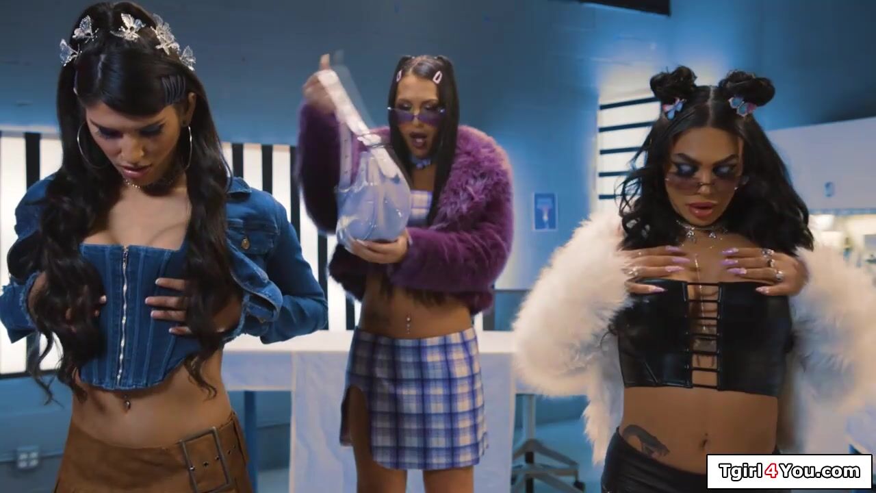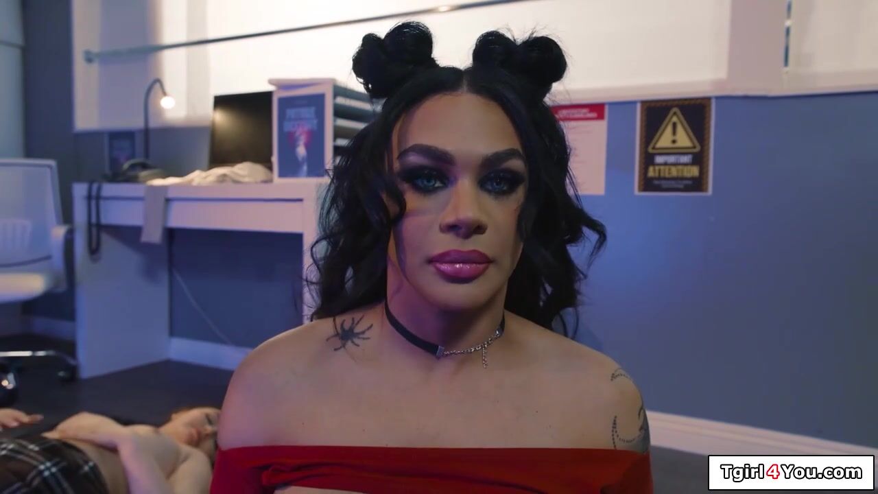 Lady scientist Siri Dahl finds the out of control trans droid Khloe Kay jerking off.The busty babe needs to overload her system by deepthroating the tgirls shemale cock.The tranny anal barebacks her and summons her two fellow droids to join