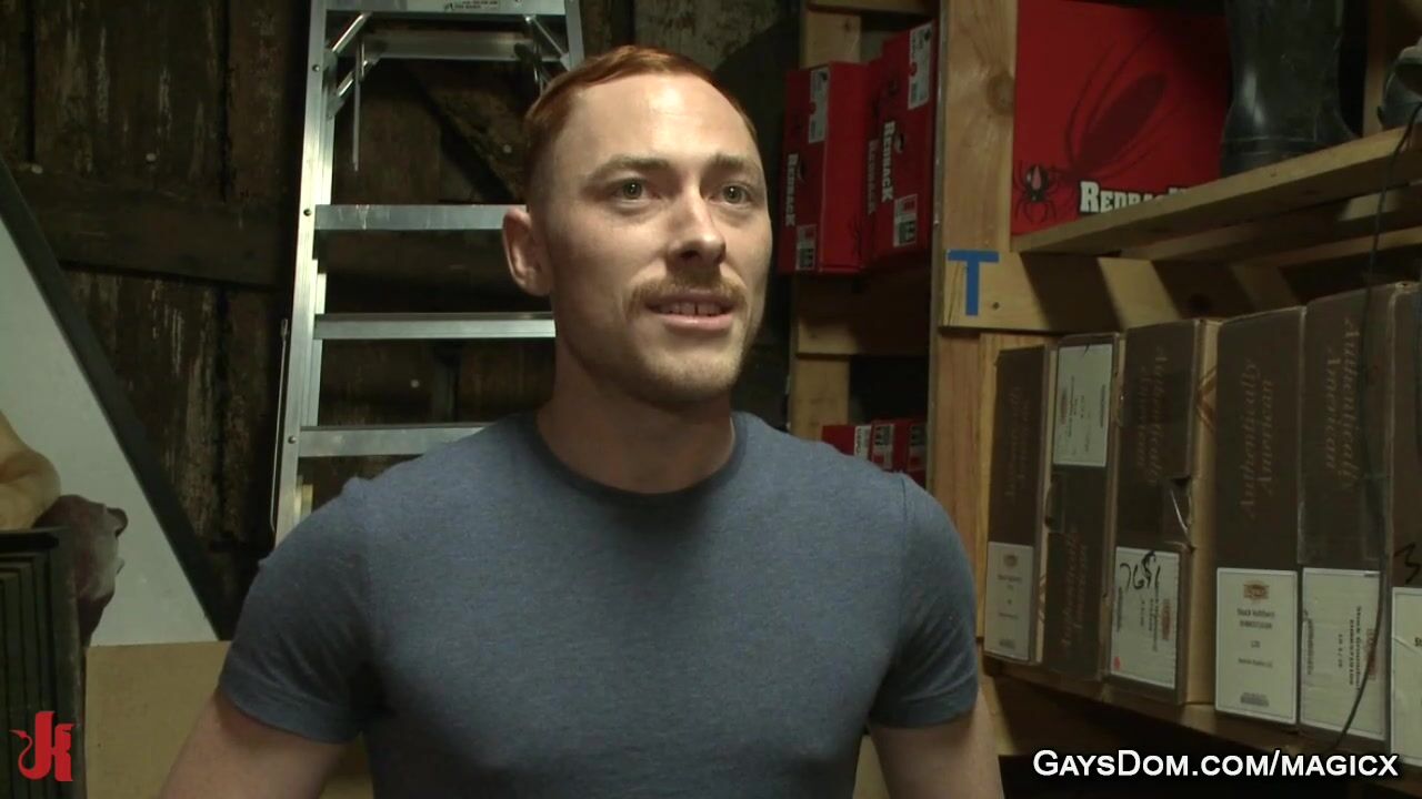 Lazy ginger gay employee Damien Moreau is tied up by his coworkers Connor Maguire and Bryan Cavallo and gag to everyone who comes up to grope him then rough flog and fuck him outdoors in public