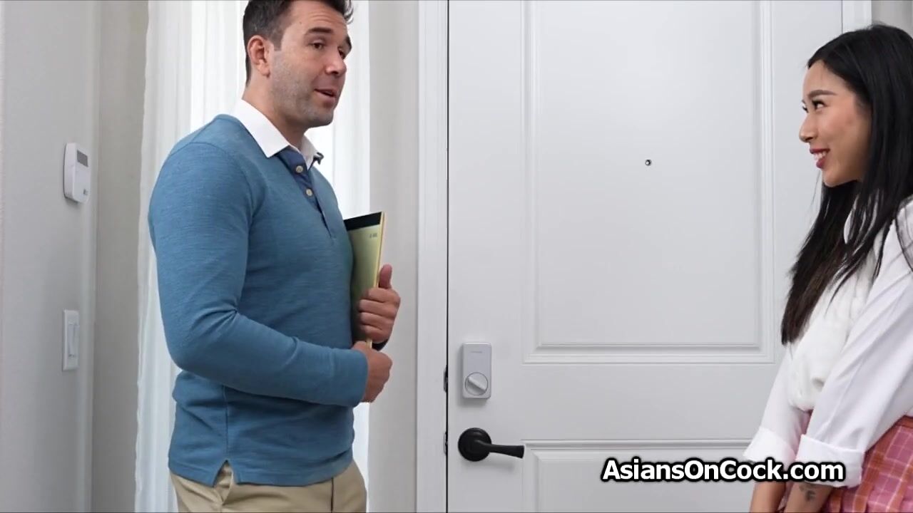 Tutor hammering Asian pussy at home