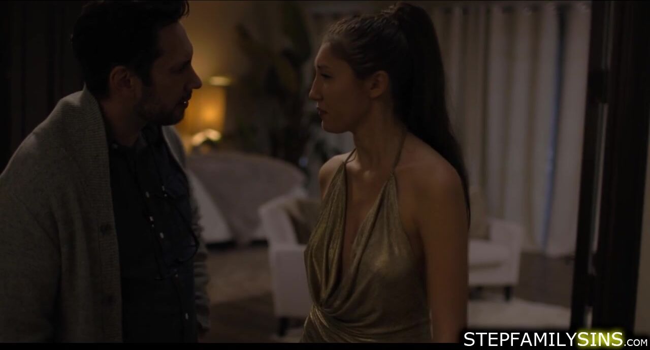 Maya Woulfe tries to sneak out to party but her stepdad caught her.She is seducing him in order for him to change his mind.The petite stepdaughter is giving her stepdad blowjob and then sucks his balls.The guy takes her to bed,licks and fuck her hard