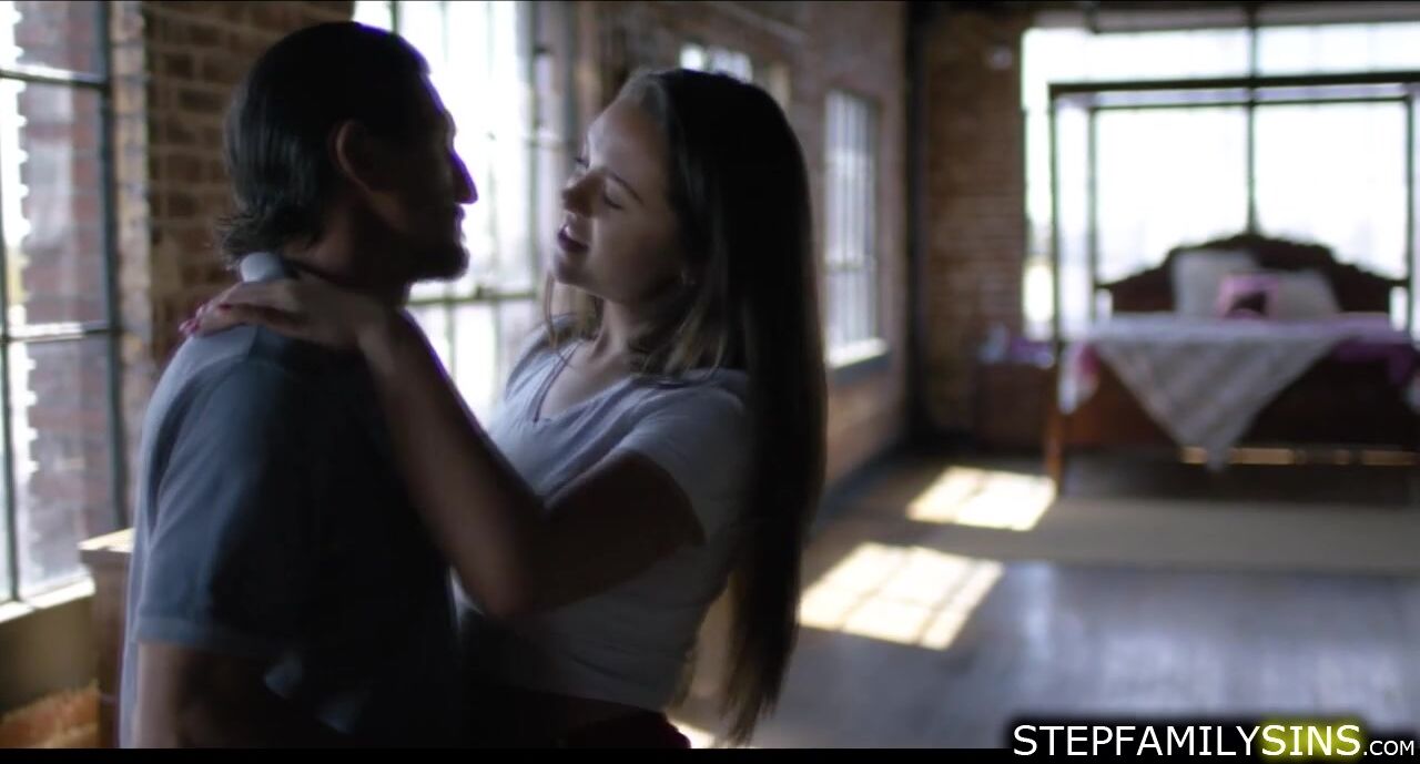 College babe Nicole Sage takes her stepdad to her apartment to avoid getting caught by the family.The big tits stepdaughter starts sucking and deepthroating her old mans big cock.The dude pulls her pants down,licks her hairy pussy and fucks her