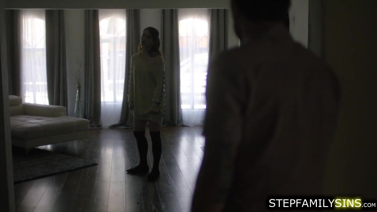 Evelyn Claire gives in to her stepbros temptations by recalling their taboo affair.The guy grabs her and starts kissing her neck.He lifts her dress and up and goes licking her pussy.The stepsis grabs her natural tits while deepthroating his big cock
