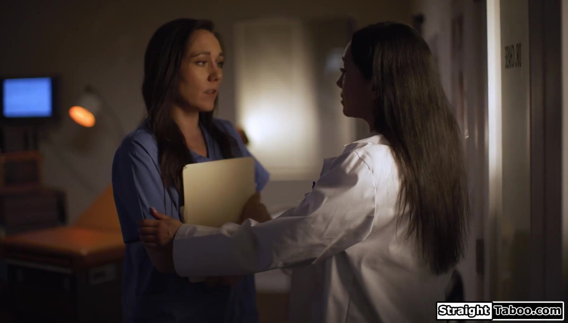Latin milf doctor Vicky Chase seduces nurse Sinn Sage to comply to stay out of trouble.It works and the lesbians make out.The doctor sucks boobs and lets the nurse taste her pussy.She masturbates the small tits petite babe and licks her to an orgasm