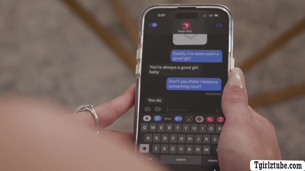 Trans babe Ariel Demure message her boyfriend King Noire to buy her a necklace.After that,her boyfriend arrive and hand over the necklace.As a thank you she throats his hard big cock passionately and lets him bareback her wet ass.