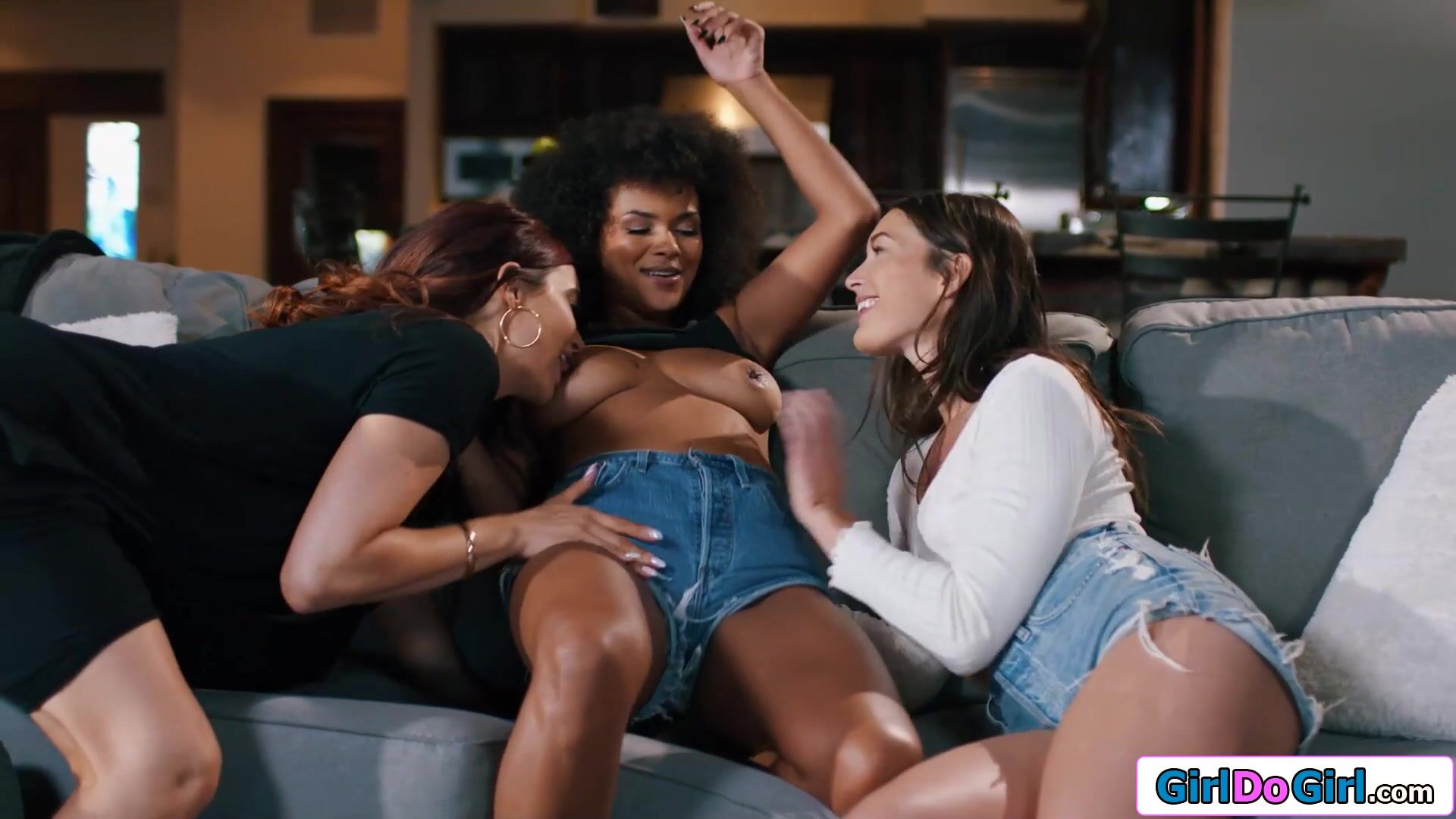 Small tits milf hired a busty psychic to tell her big tits ebony roommate she has a crush on her.The lesbians ask the cougar if she wants to join them and both suck the black babes boobs.All three facesit and lick each others pussy for an orgasm
