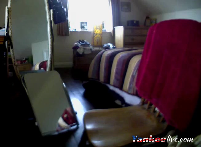 Starts on the bed, moves over to the chair and finishes bent over watching herself in the mirror... full version of an earlier post.
