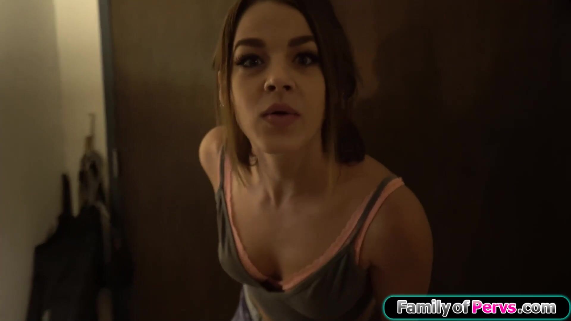 Ah nice,I caught my super hot petite stepsister Evelyn Stone trying to sneak out.I will keep shut as a good stepbrother but she has to suck my dick.The small tits tattooed babe got horny from deepthroating me and set her pussy on my cock for a ride