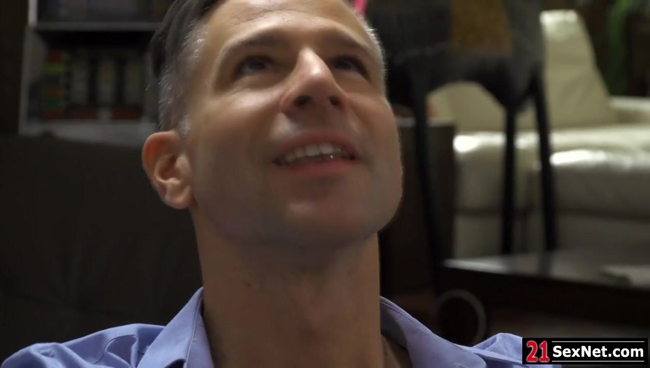 European babe Lexi Layo is teasing her guy by stripping and showing her natural tits.She pulls his pants down and gives blowjob.After playing with his big cock she bends over.The dude removes her panties,rims her ass before fucking her hard.