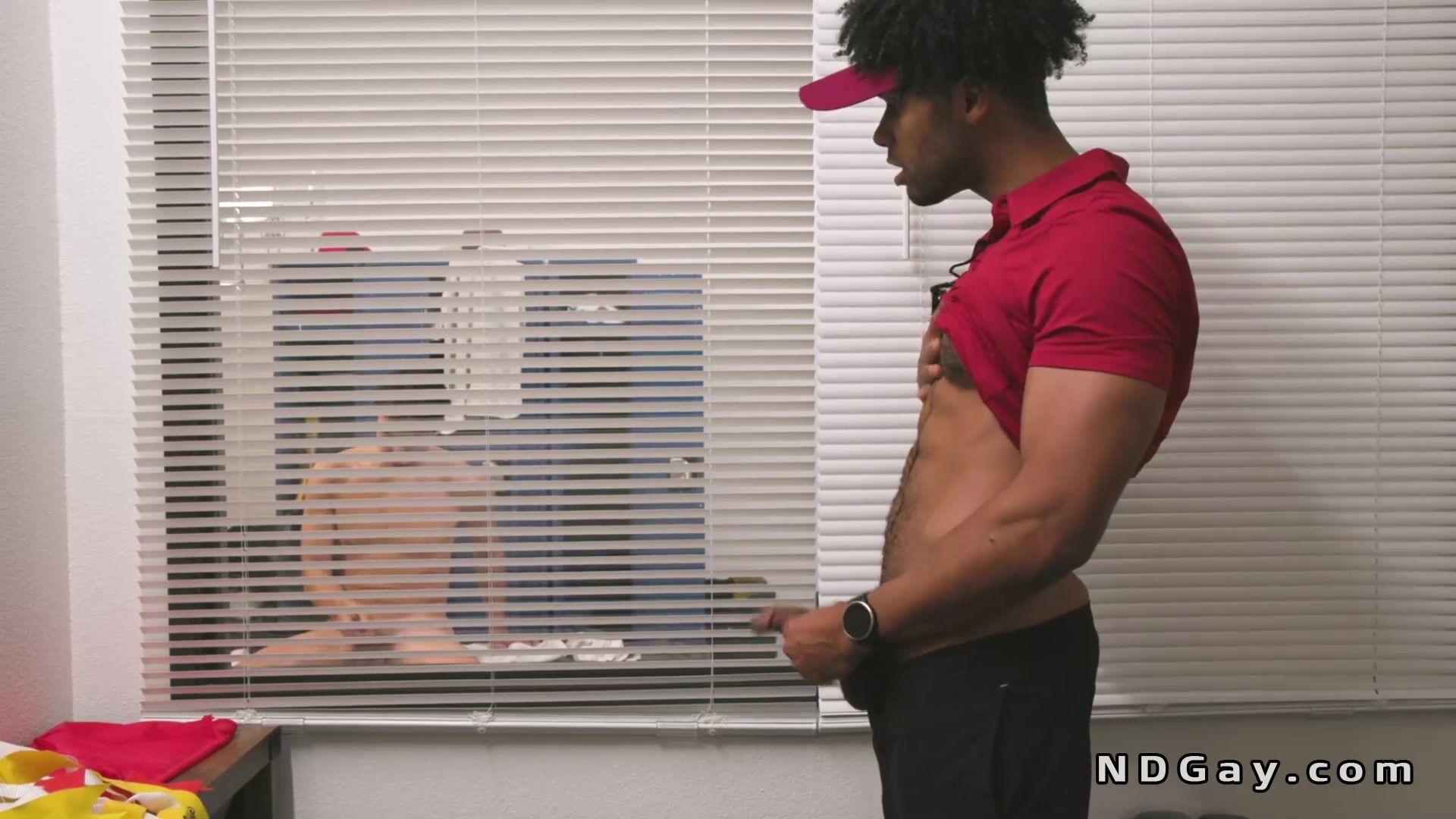 Black coach Tony Genius caught football player Cameron Neuton masturbate in locker room then took him in the office and gave him rimjob before took tight black ass fucked