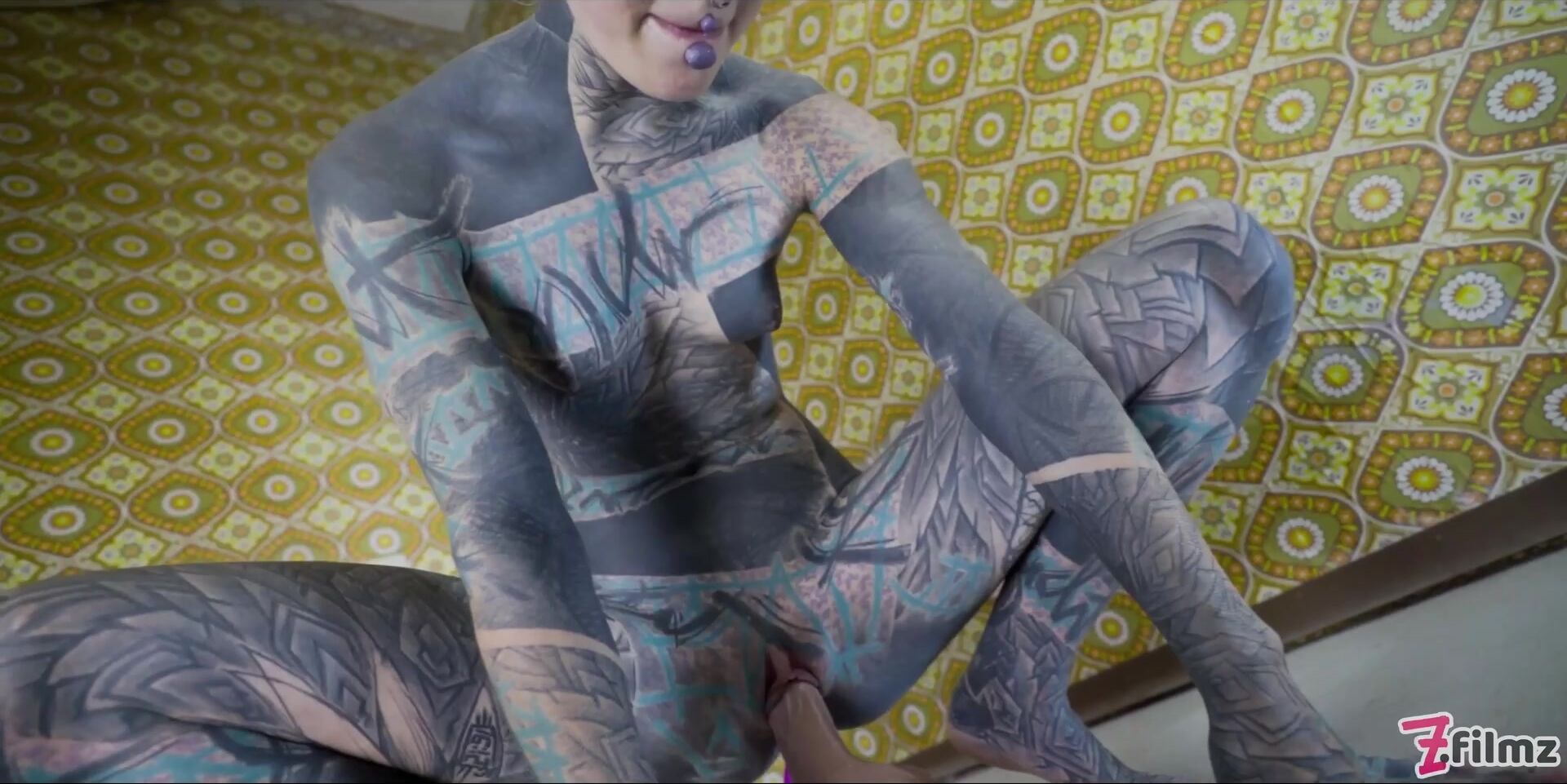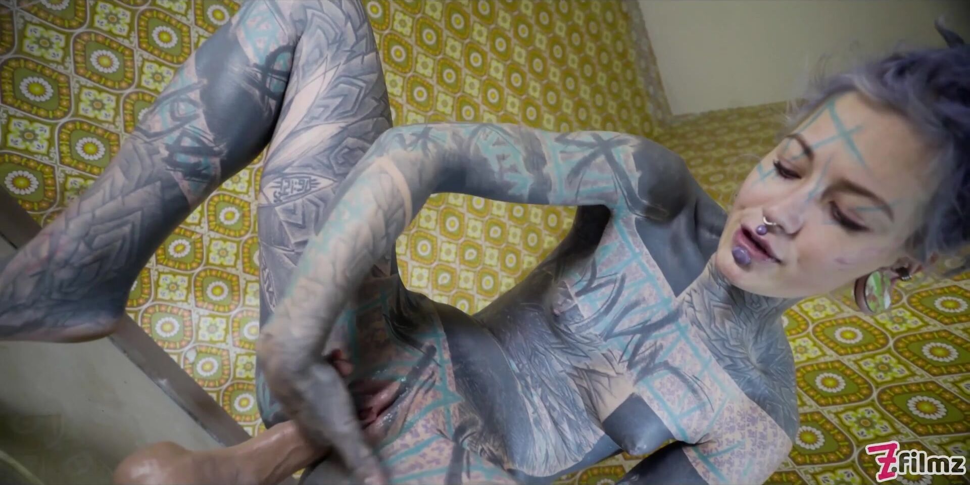 Tattooed model Anuskatzz masturbating with a big toy