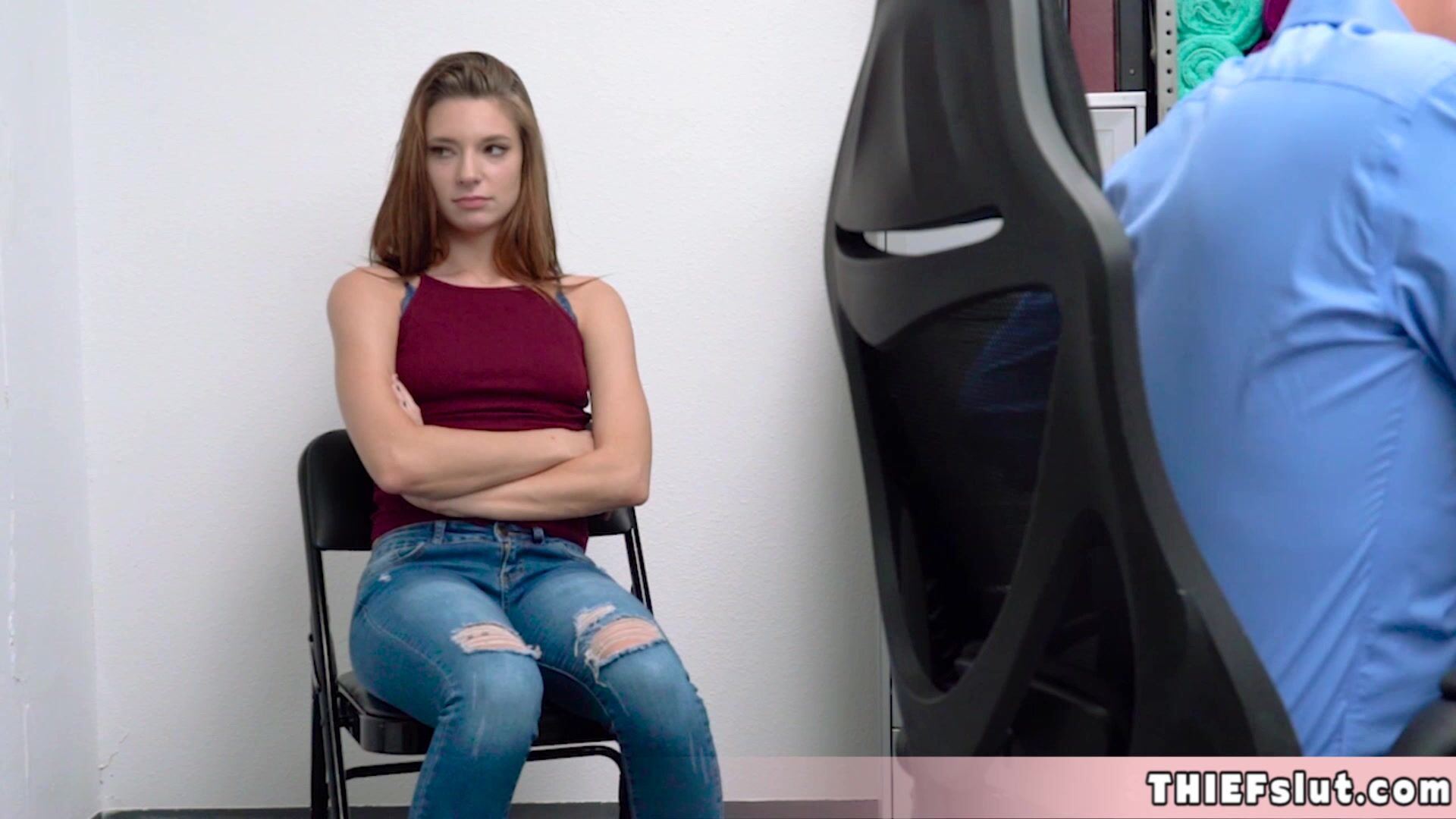 Skinny long legged thief slut caught and now she will get a rough fuck from behind