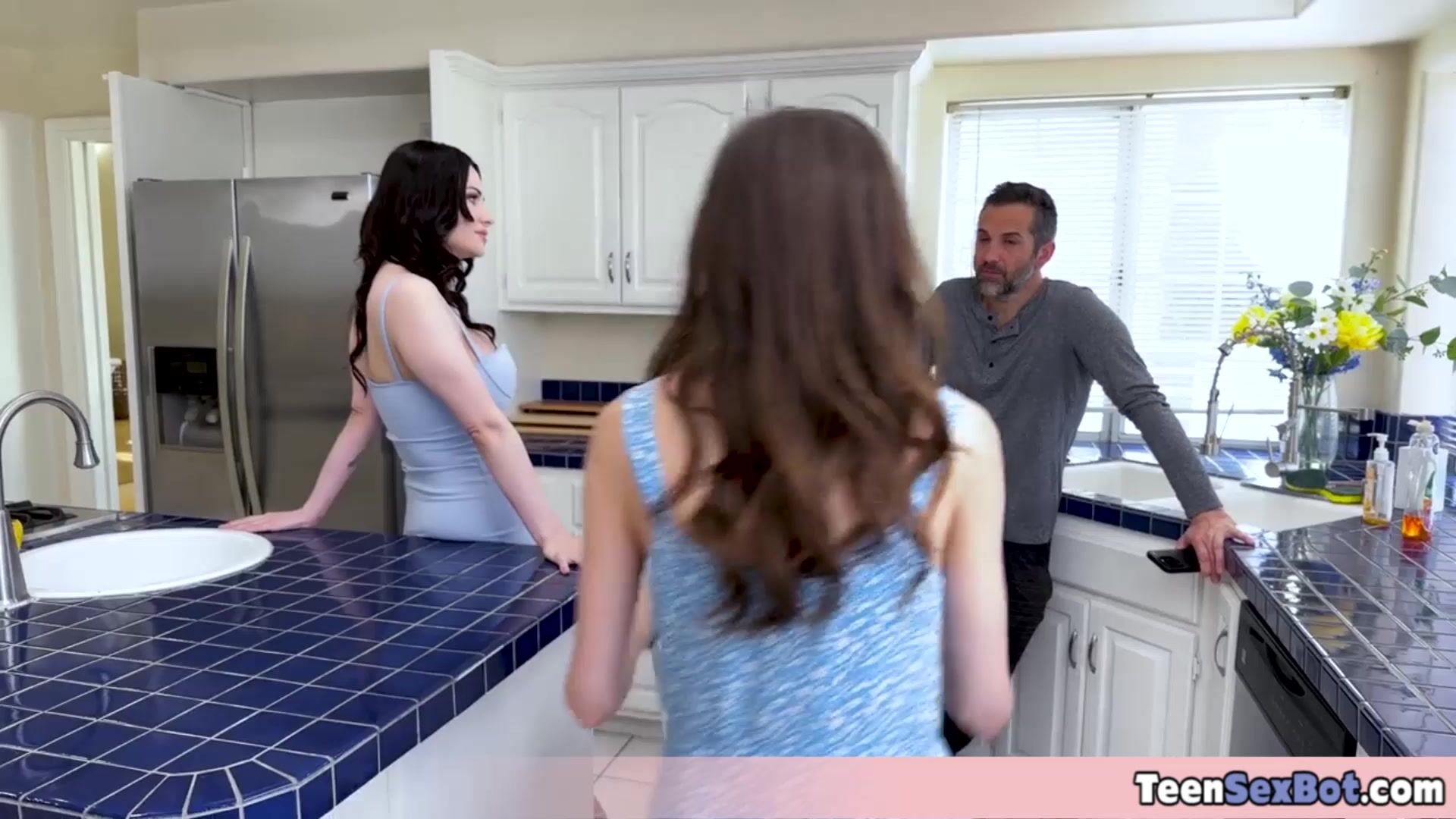 Raven haired stepdaughters having a nympho day which means Pops need to provide a hard cock for both of them