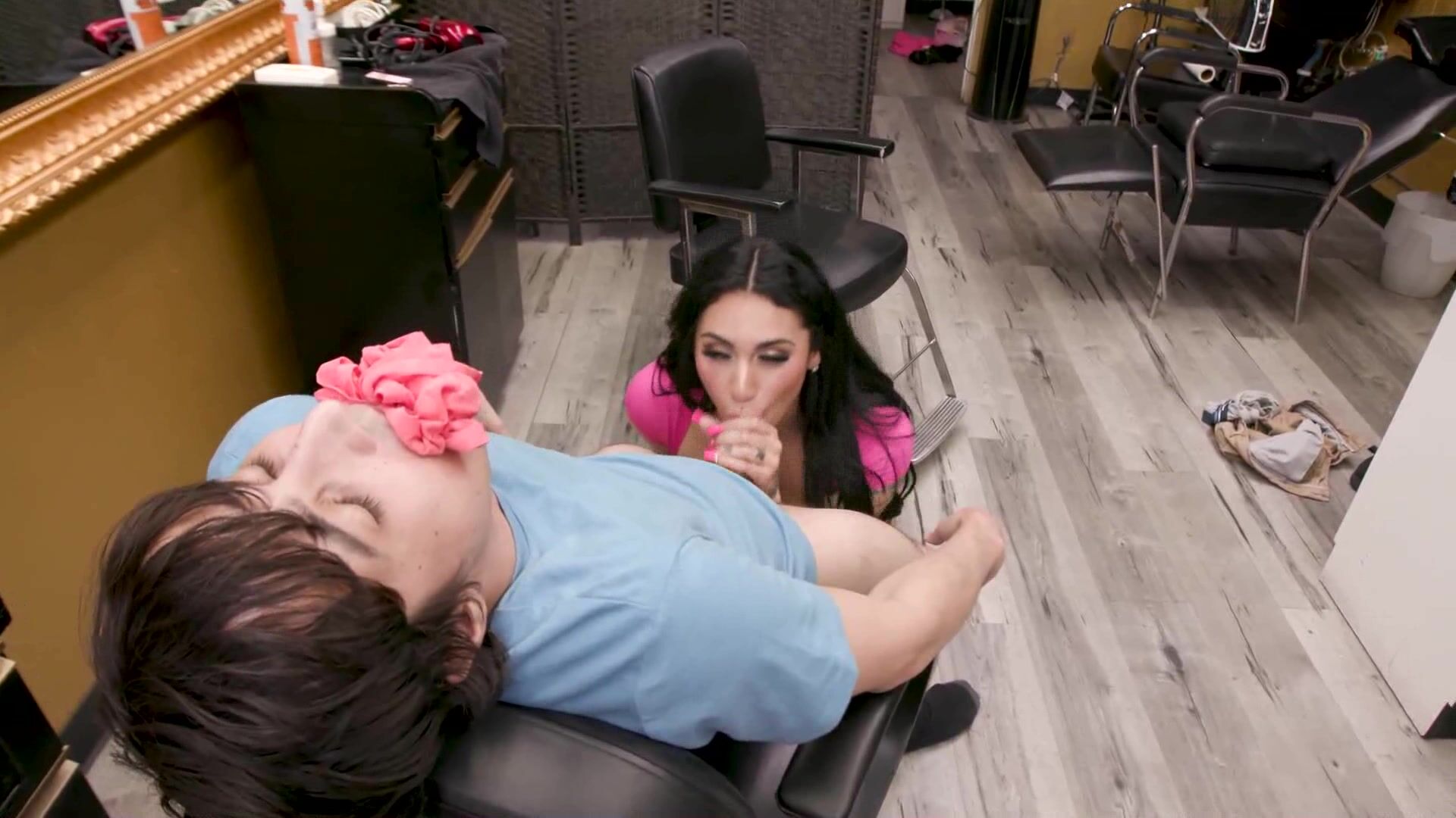 Mom hired a busty hot hairdresser for me