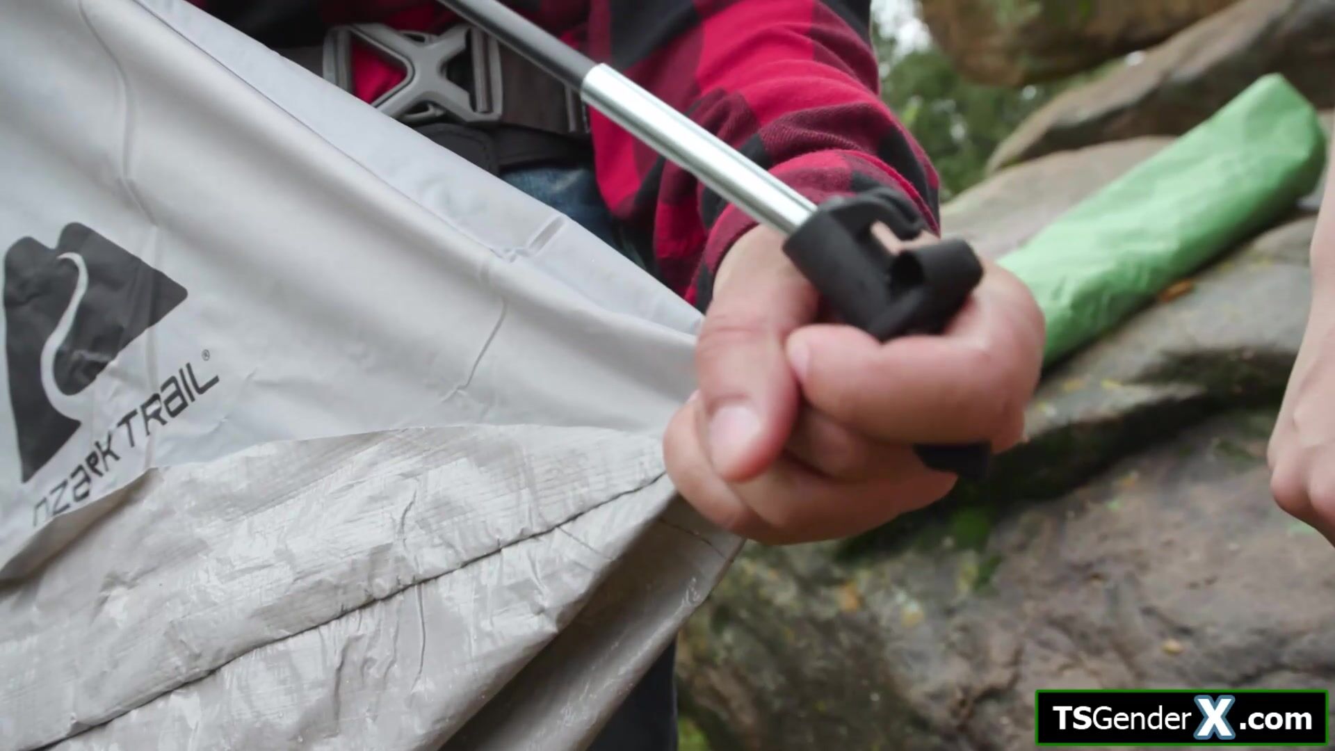 Big tits Asian tgirl Ember Fiera is all alone with her date in a tent while its raining.The busty shemale is horny and gets her trans cock sucked.The brunette tranny deepthroats his big black cock and enjoys the feeling of a bbc anal barebacking her
