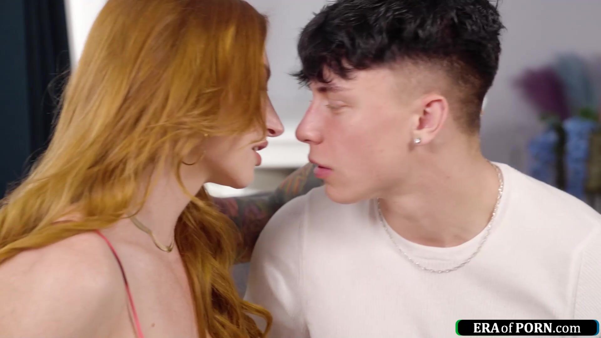 Stepson is convinced hes the one for busty stepmom Sophia Locke.The big tits redhead milf will give it a try and orgasms when he licks her shaved pussy.The ginger deepthroats cock and rides it.While she fucks him she slowly creams all over his dick