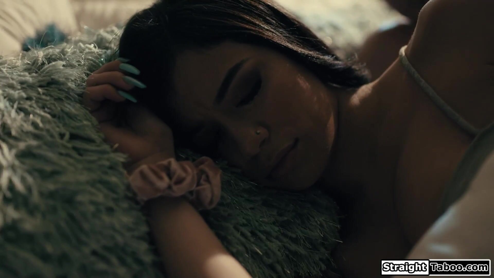 Busty latina Savannah Sixx finds gfs creepy stepbro in bed with her.If he cant fuck her he will fuck his stepsis.The busty babe lets him have his way and gets her boobs sucked before he licks her pussy.The brunette is facefucked and rides his cock