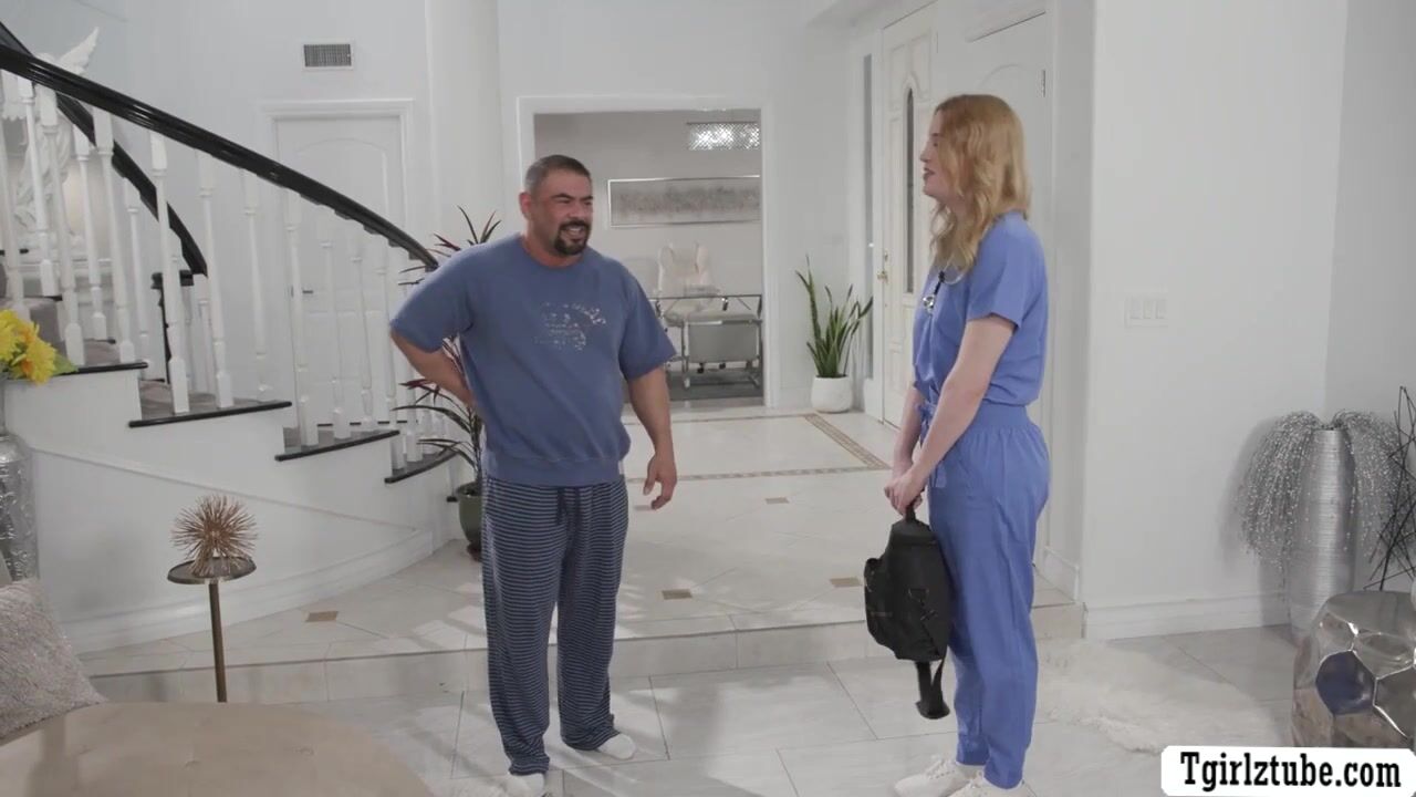 Shemale nurse Erica Cherry visits her patient in his house.Instead of checking up,it indeed sucking his hard big cock passionately.In return,her patient bareback fucks her ass so hard.Go to Tgirlztube.com for discount and more videos.