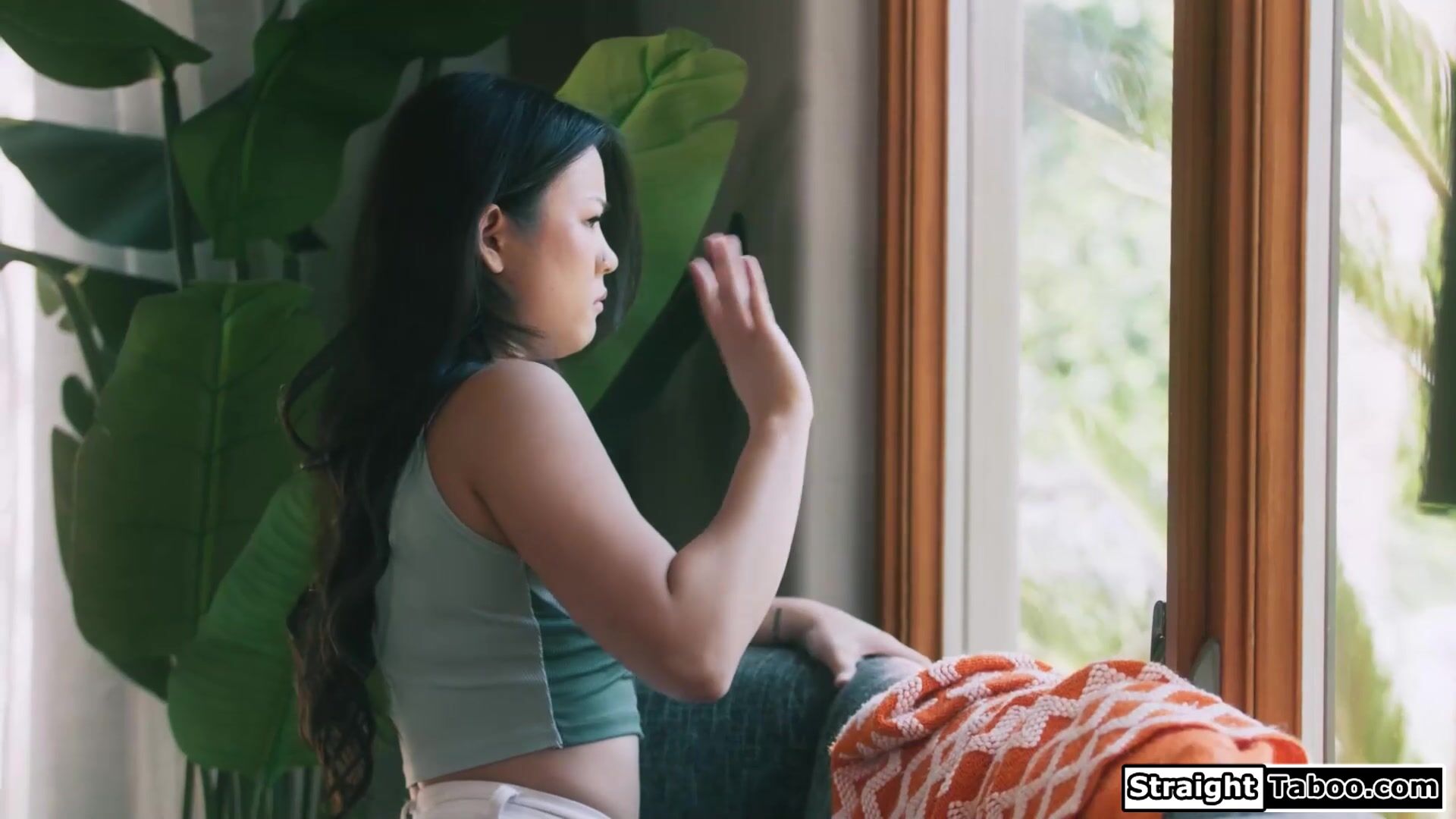 Asian Lulu Chus teacher crush moves in next door.The petite small tits brunette masturbates and he wants her to strip ifo the window.Later that night he shows up in her room and licks her hairy pussy.He facefucks her before banging her snatch