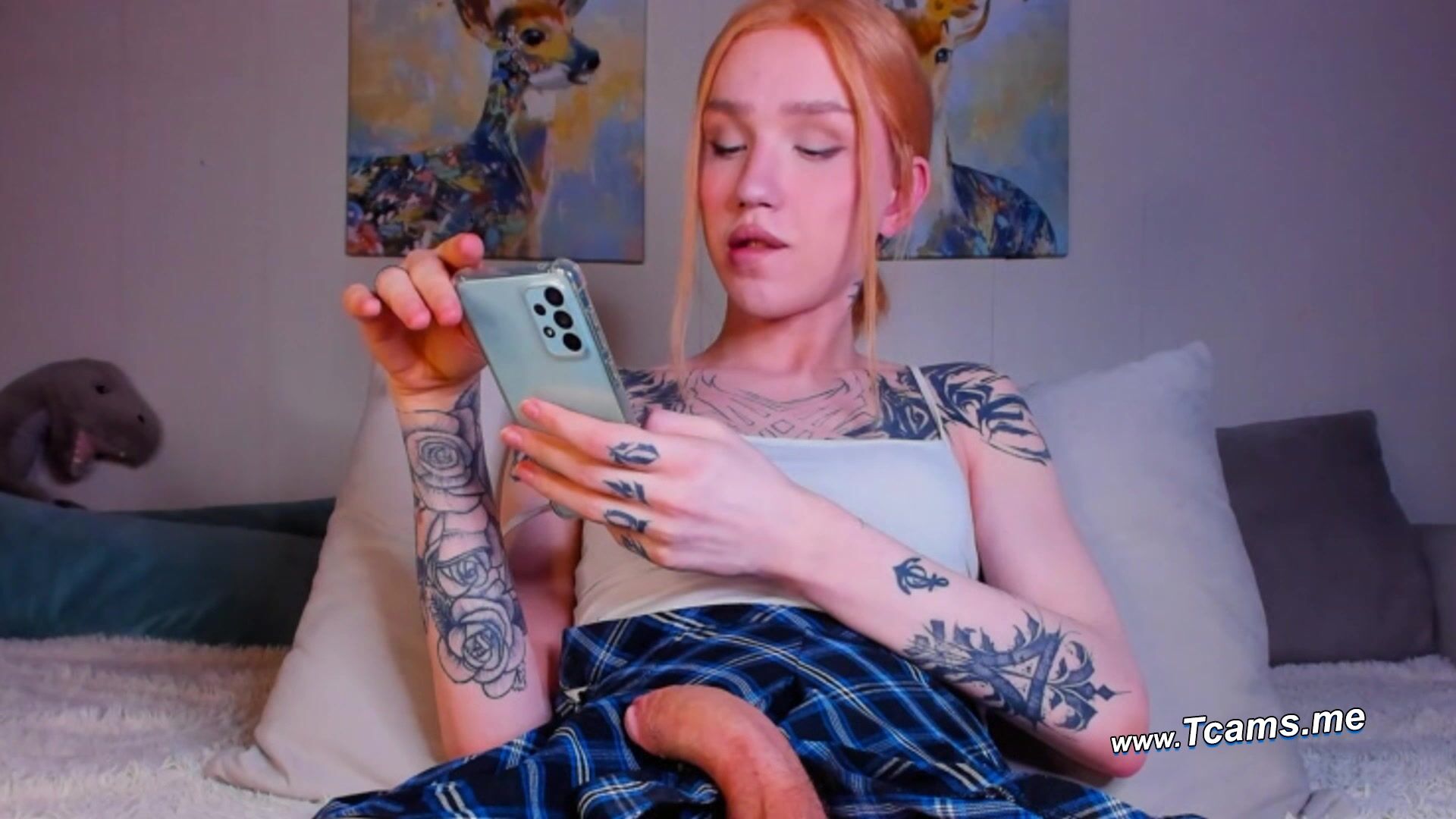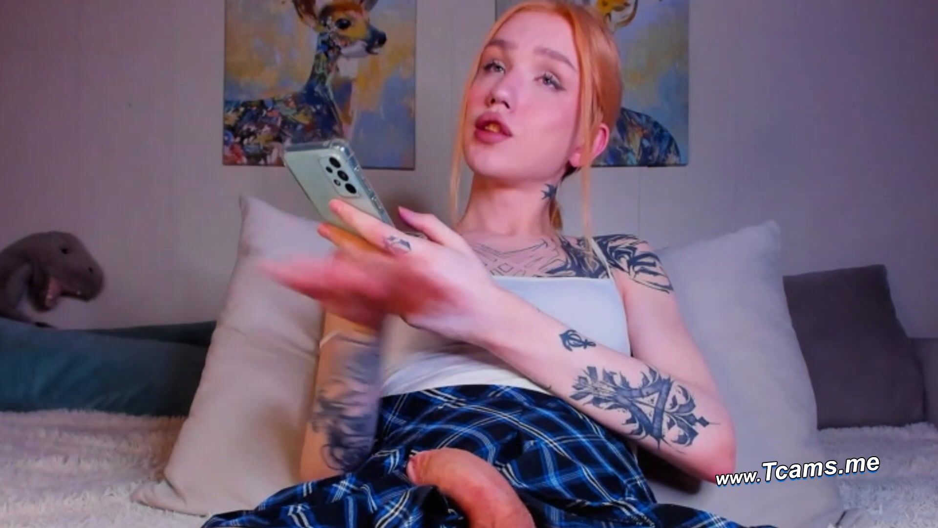 Watch this sexy and popular tranny webcam model as she plays herself wildly and all alone in her room. Watch her stroke her stiff and big cock up and down and see her grind in a hot and sexy cam show. She loves fapping her nice and hard cock that by looking at this tease will give you a huge boner. She is teasing you like an invitation to take her then she ceaselessly shows of her sexy body and jack off with her really big cock. Watch her how she will pleasure you by masturbating her big cock.
