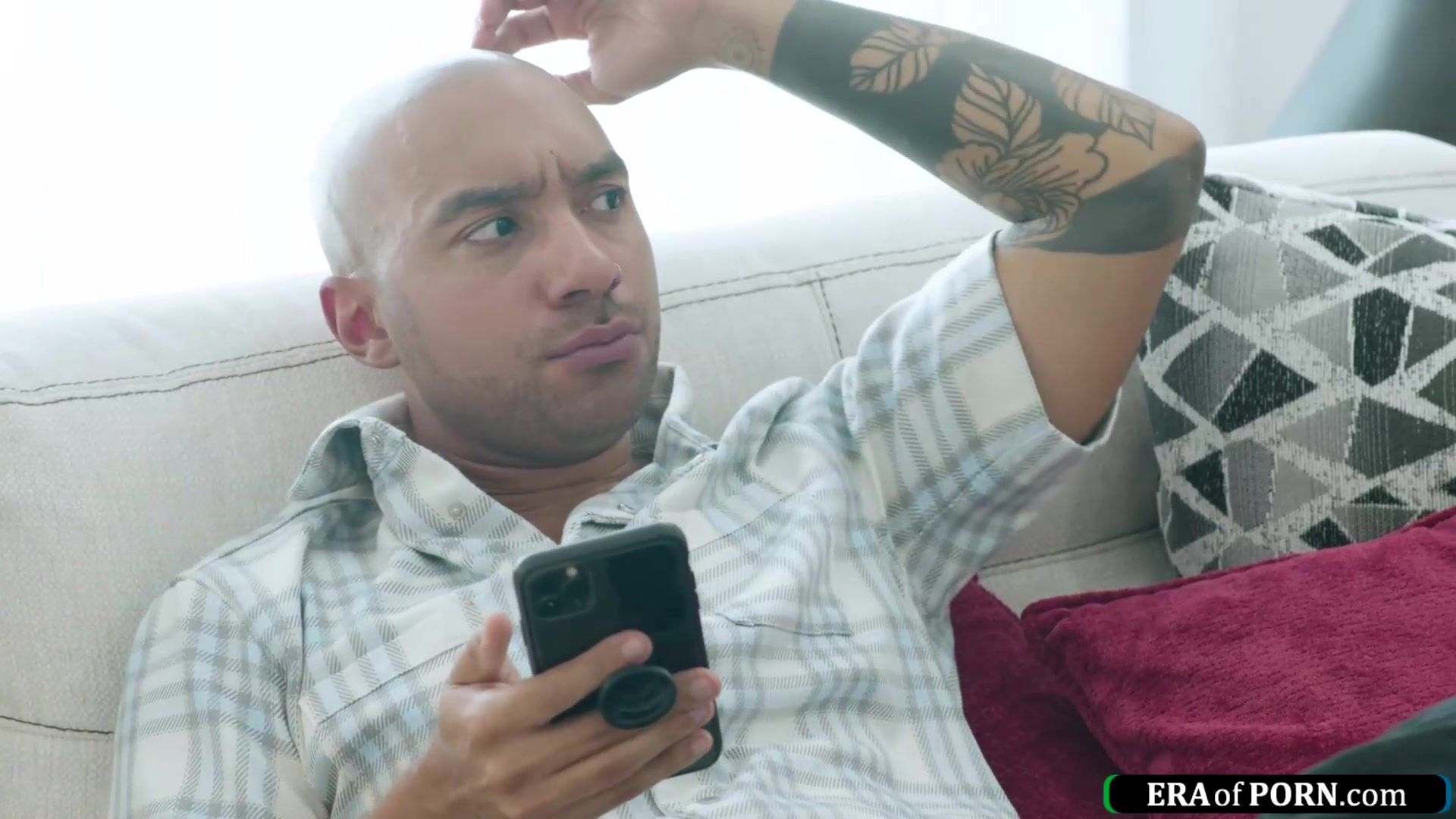 Natalie Brooks really needs to rub one out on her stepbros super hot friend.The small tits petite latina gets caught by him while she rides her dildo.The two kiss and the brunette sucks his black cock.After he licked the babes pussy he bangs her
