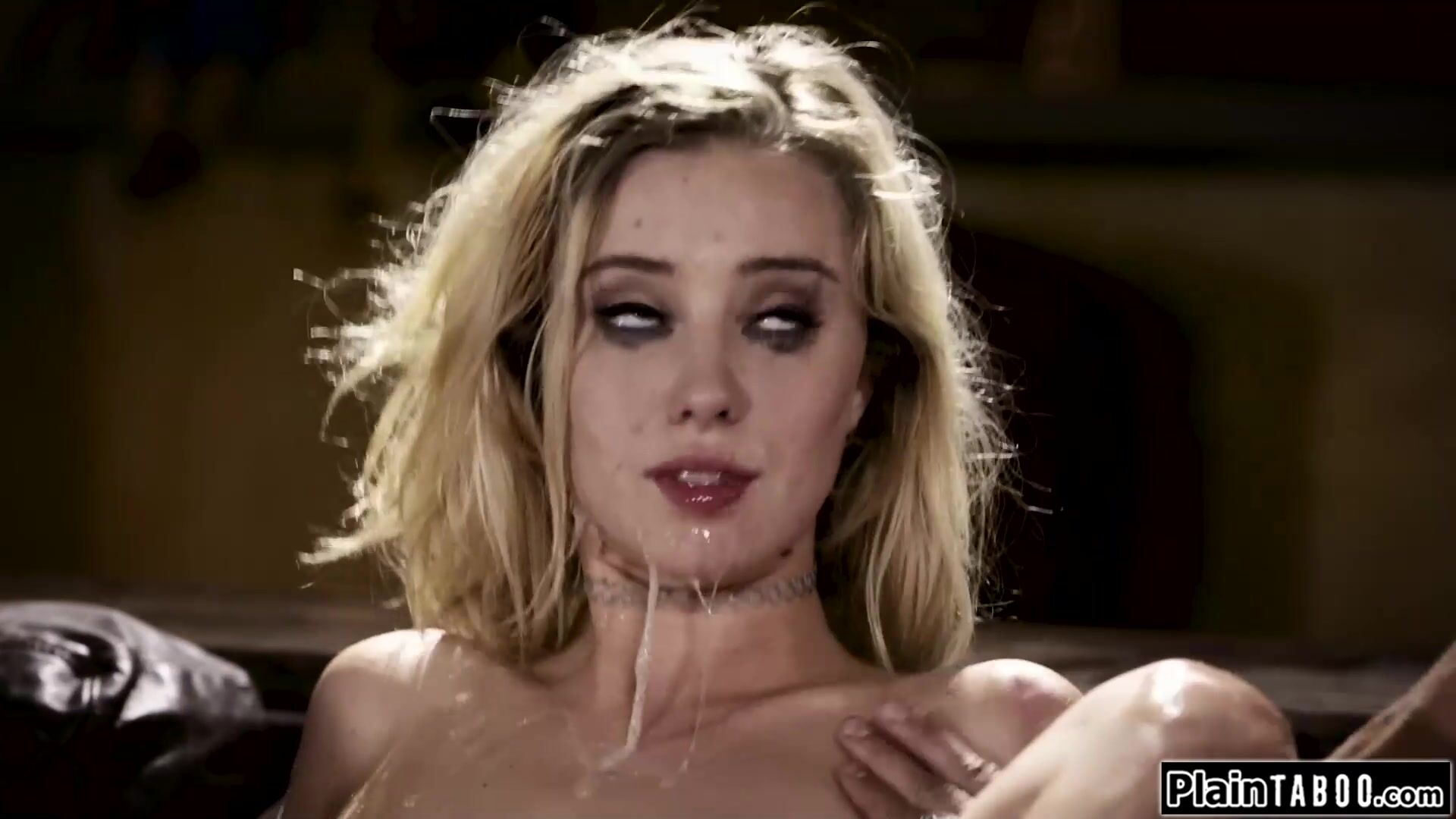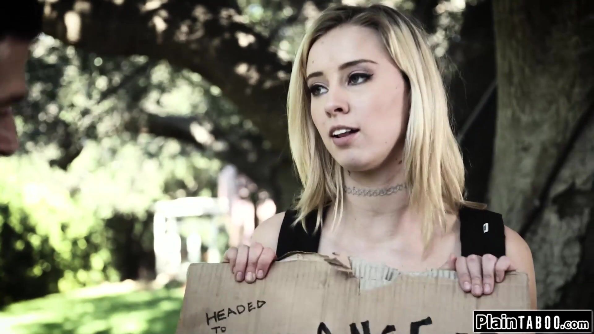 Small tit hitchhiking teen Haley Reed picked up by two guys.These guys have dirty plans with her.The blonde sees one jerking off on her and she gets convinced to let him join.She rides dick while being facefucked rough before shes double pussy banged