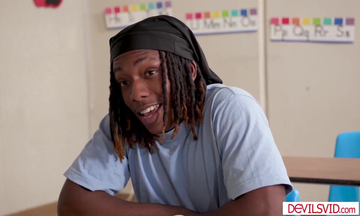 Blonde teacher Lolly Dames is giving special class to her black student.The dude starts yapping about his bbc getting the milf turned on.Lolly grabs his big cock,gets throat fuck then doing titjob.She gets so horny and lets the guy fuck her ass.