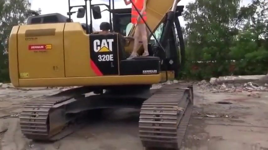 Magersüchtige deutsche Amateurin wird auf einer Planierraupe gefickt