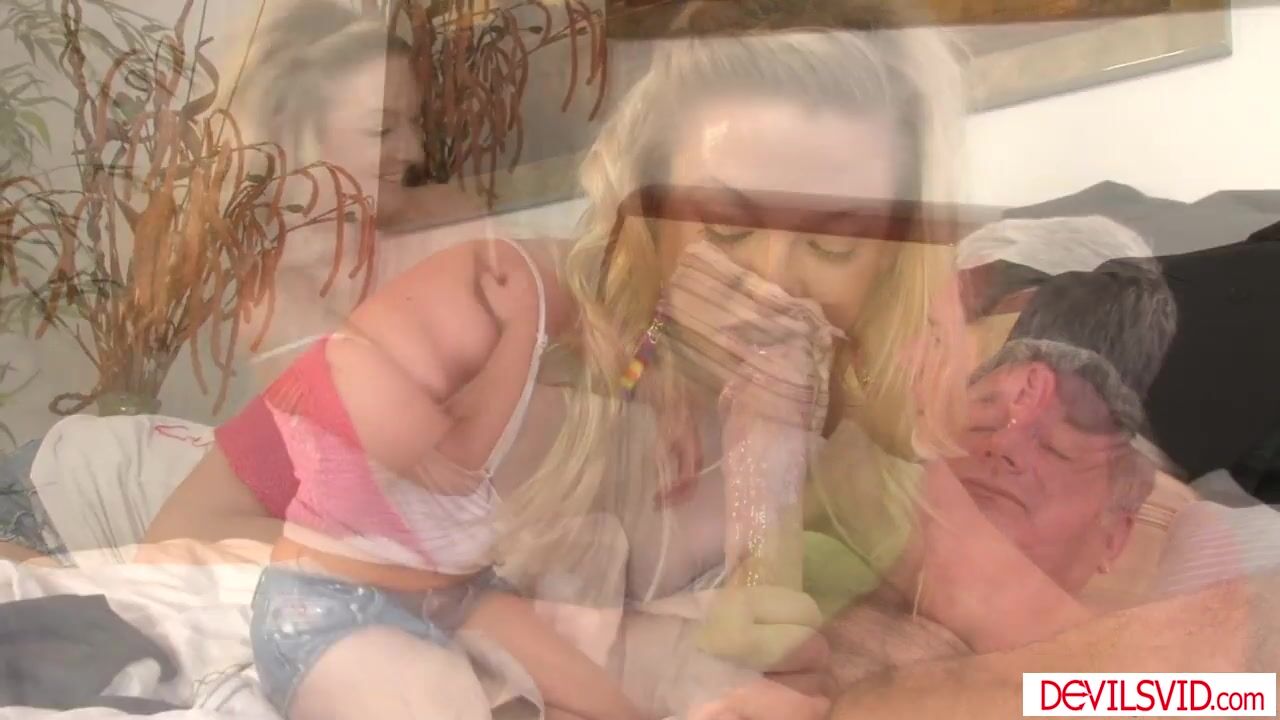 Teen Tristyn Kennedy takes photos of her bffs stepdad naked on the bed.She helps the old man with his boner by sucking him.The geezer pushed her head all the way down while shes deepthroating him.Then goes on licking and fucking her petite pussy.