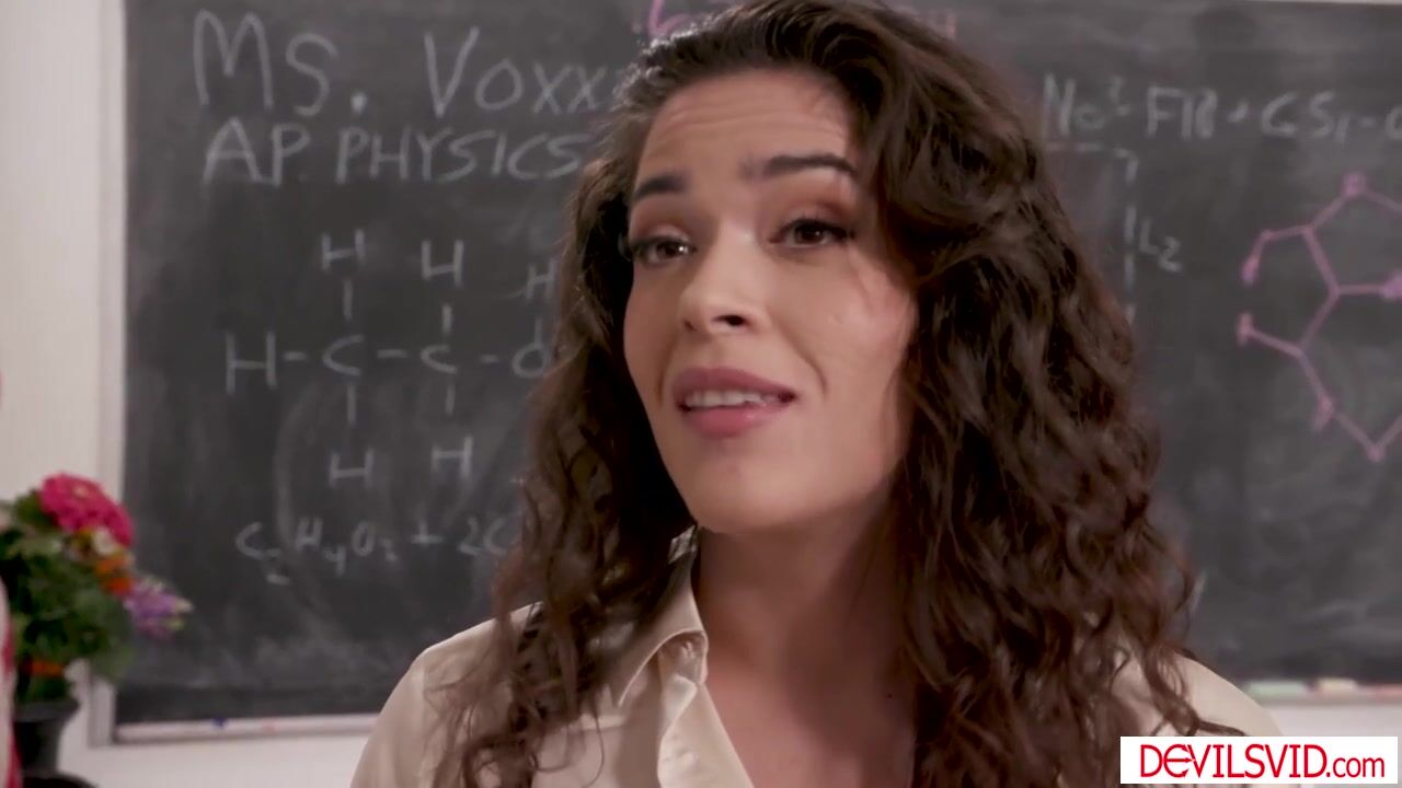 Teacher Victoria Voxxx speaks privately with her hunk student who sent her his dick pic.The guy admits he finds her hot.The milf latina grabs his hard cock and starts sucking.She lies down on the table and lets him penetrate her ass and pussy