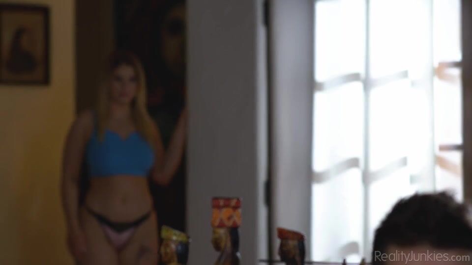 Petite redhead is pussy fucked while big tits gf sucks balls