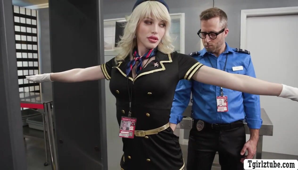 Airport security caught their TS flight attendant bringing sex toy on her luggage bag.Instead of arresting her,he lets her throat his big dick passionately and bareback fuck her ass in return.Go to Tgirlztube.com for discount and more.