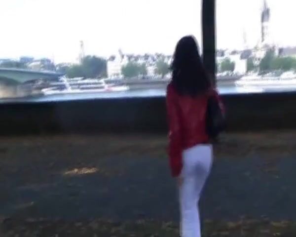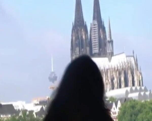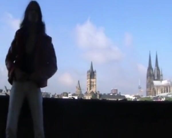 A sexy German woman gives a blowjob and receives a facial in public outdoors by the Rhine River in Cologne, with a mobile phone capturing the naughty act.