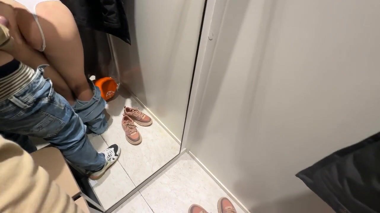 Fitting Room Blowjob and Cumshot with a Big-Ass, Big-Tits Amateur