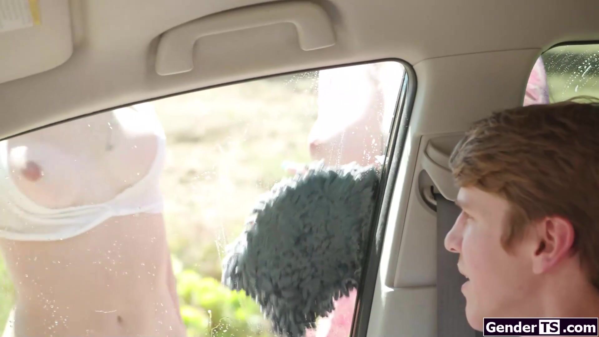 These two super sexy tgirls want to wash more than just cars.Busty shemale Gracie Jane and her trans gf Jayne Calloway want to suck cock.The blonde tranny is jerked off while being rimmed.After the transsexuals gave a handjob they bareback anal ride