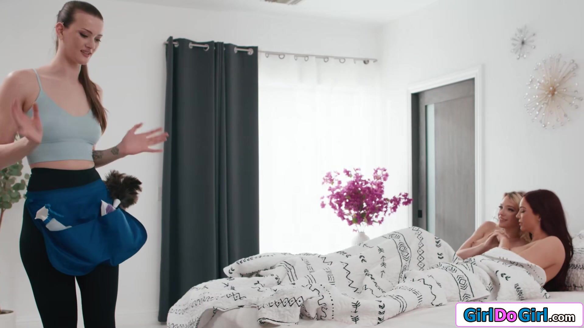Cleaner Olivia Madison drops her laundrey when she stared straight into boss Kenna James pussy.The busty blonde and her big tits redhead milf wife Jayden Cole invite her to join.The lesbians kiss and suck her boobs before all three lick pussy
