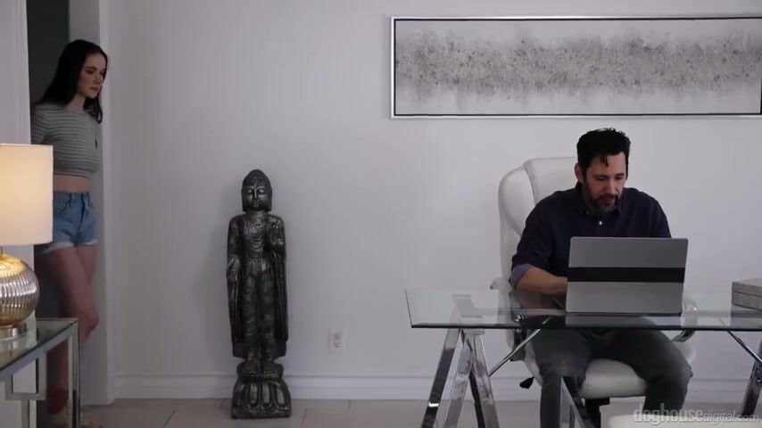 Stepbro blowjobs and fucks teen stepsis behind their stepdad
