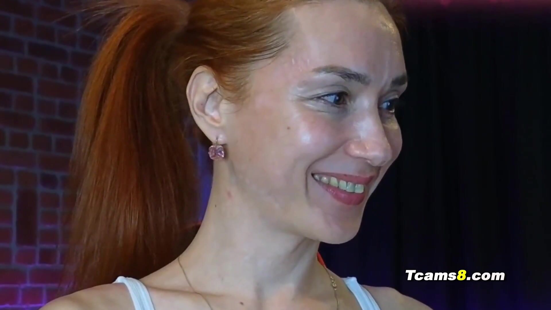 Redhead shemale jerking her shaved cock
