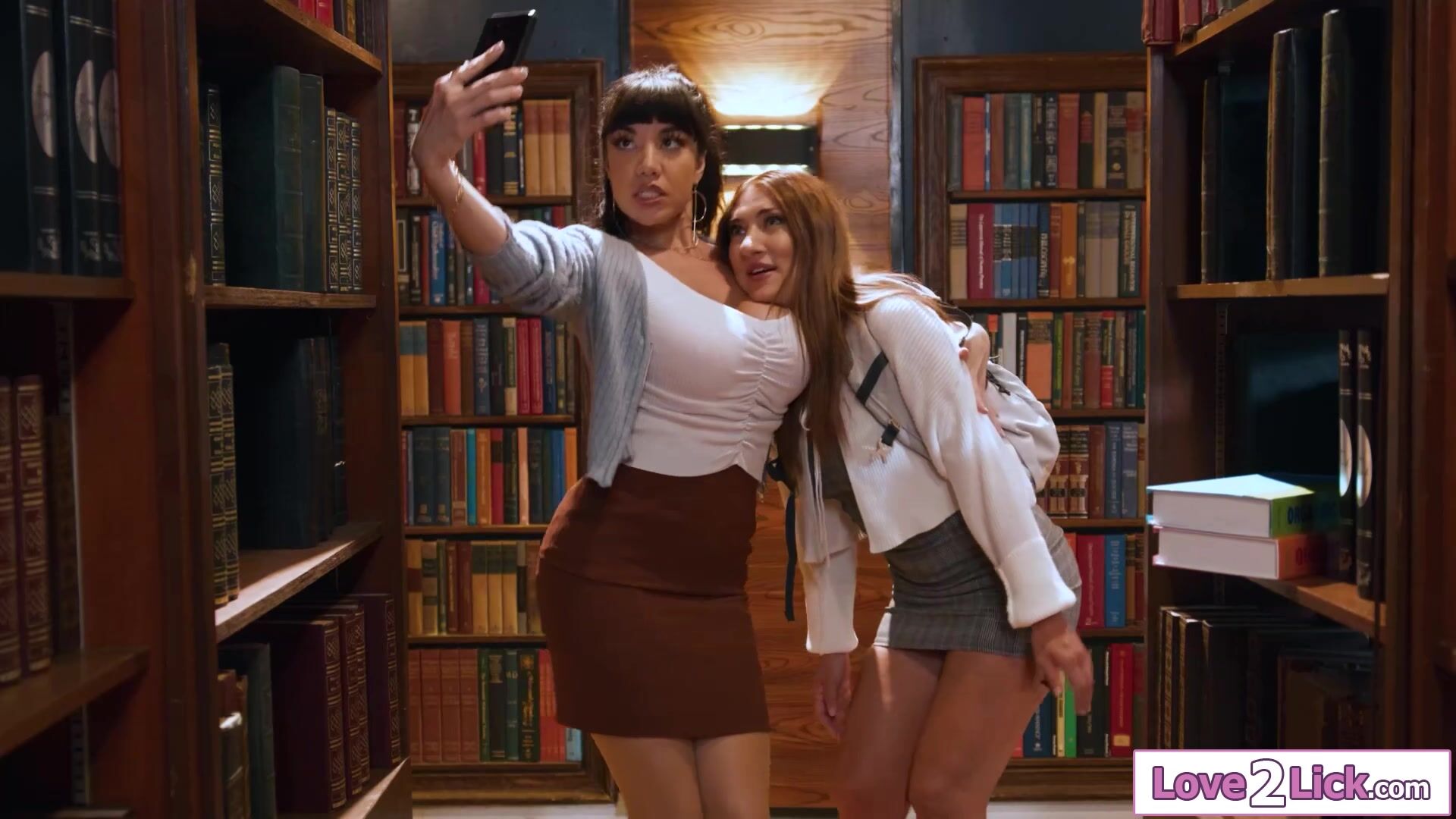 Petite babe licking the busty librarian
