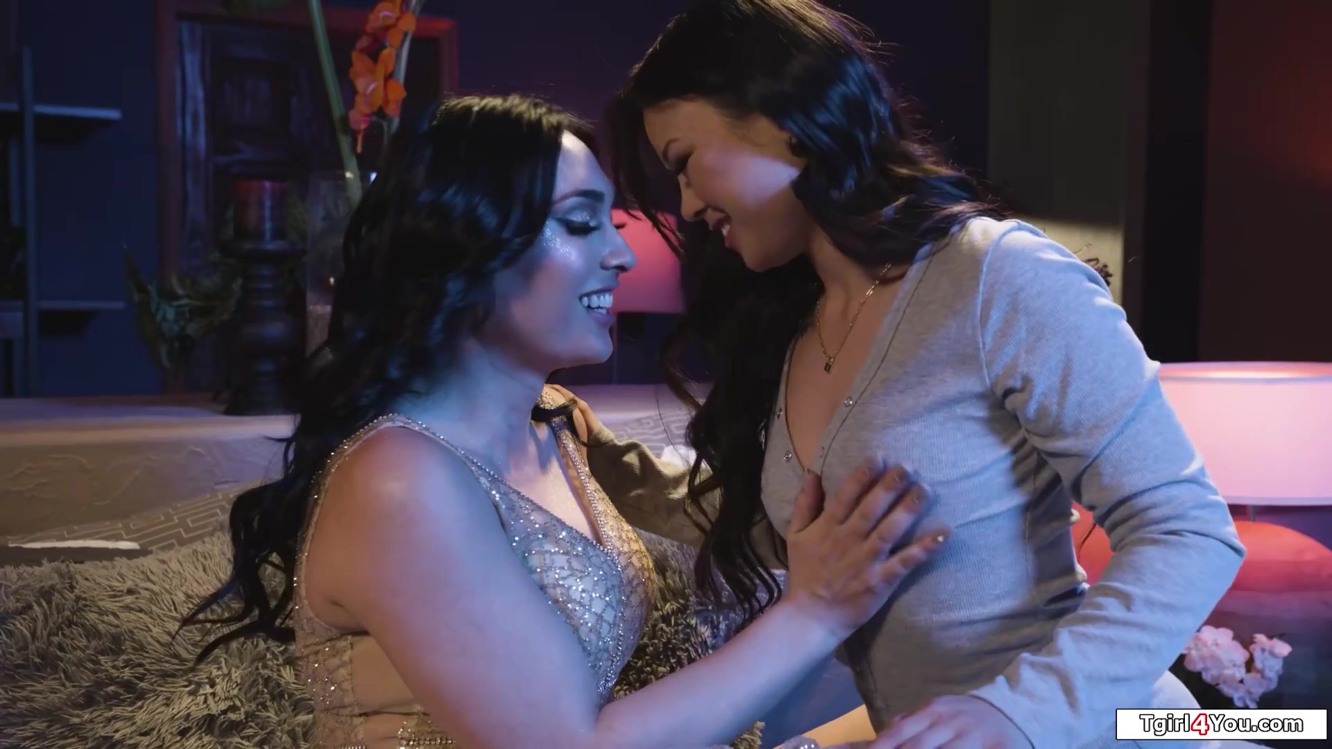Beautiful fallen trans star Ember Fiera awakes in Asian Lulu Chus bed.The petite babe takes out the oriental shemales cock and deepthroats it.The big tit tgirl 69 pussy licks the brunette while getting her tranny dick sucked.The transsexual bangs her