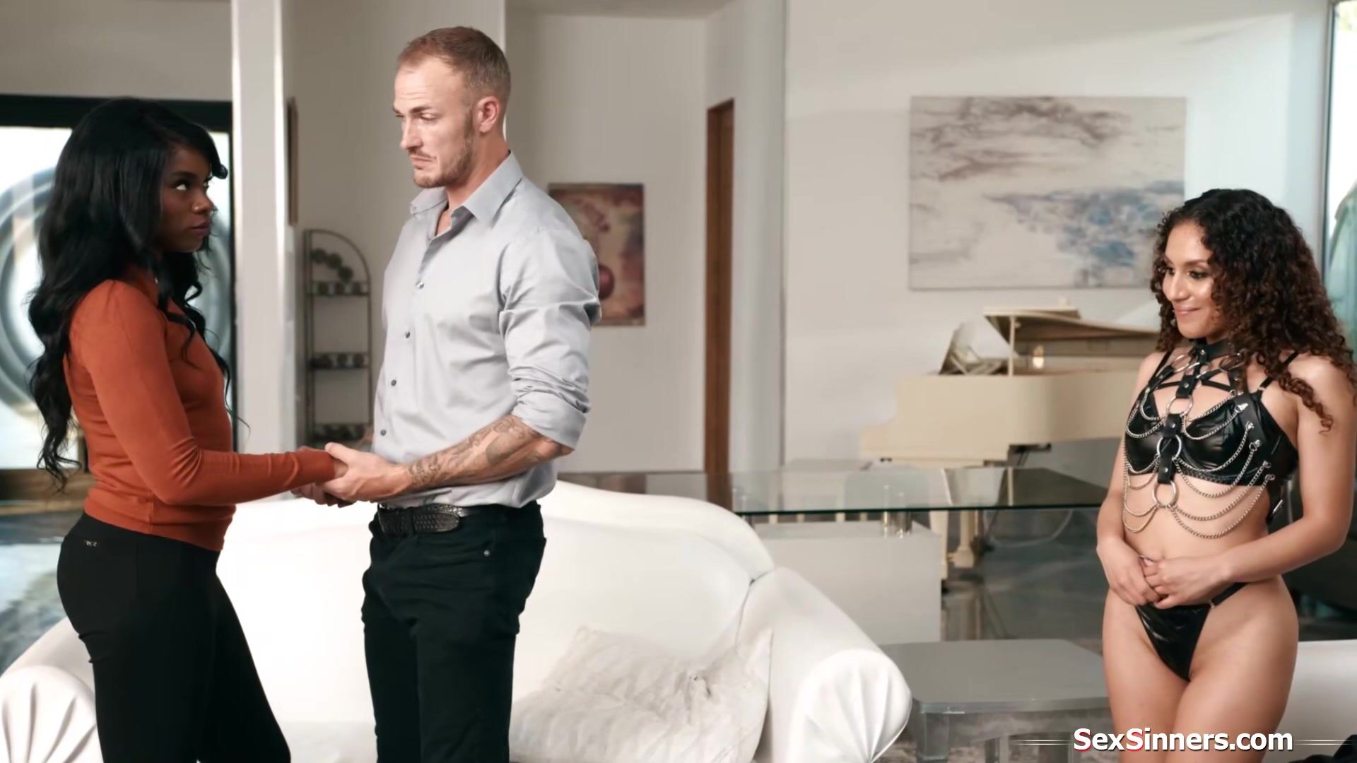 Ebony wife Ana Foxxx is shocked that her husband brought in sub Liv Revamped and expects her to submit as well.She caves and lets him put a gagball in her mouth and clamps on her nipples.The milfs licked and fucked rough n gives a pussy2mouth blowjob