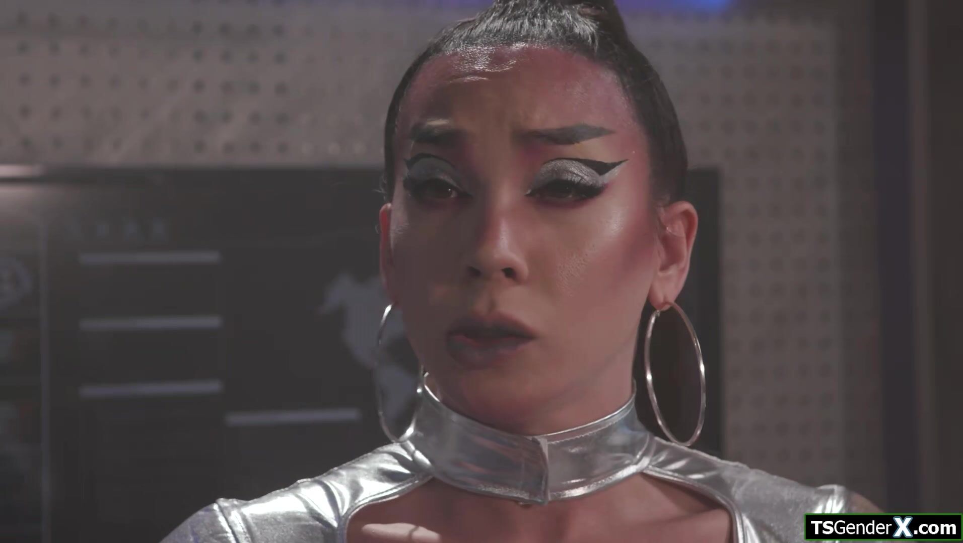 After being frozen for 500 years asian trans alien Kasey Kei is horny as fuck.The shemale gives a double handjob and is rimmed.The small tits tranny is deepthroated and sucks the space captains big cock.The brunette tgirl bareback anal rides