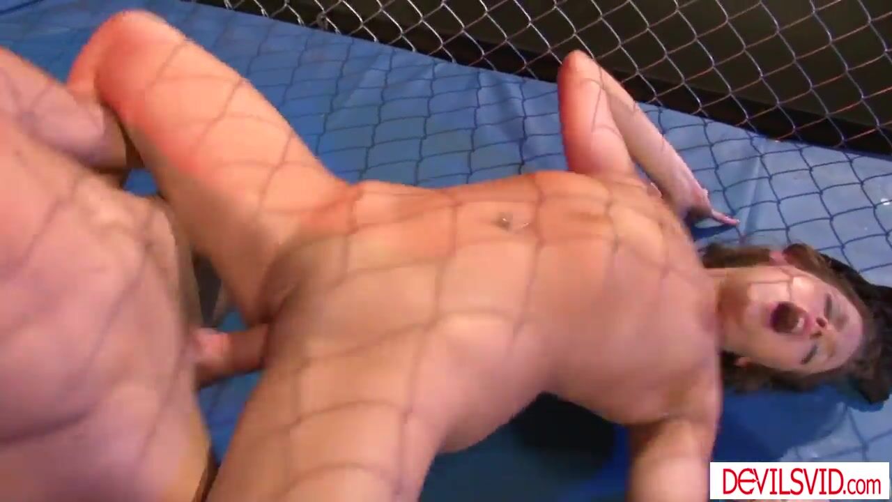 Teen Ashlynn Leigh joins an underground fuck fest competition with live audience.She enters the ring then starts sucking the guys big cock.The petite blonde gets her mouth stuffed with that fat dick.Then she rides him hard getting her ass fucked.