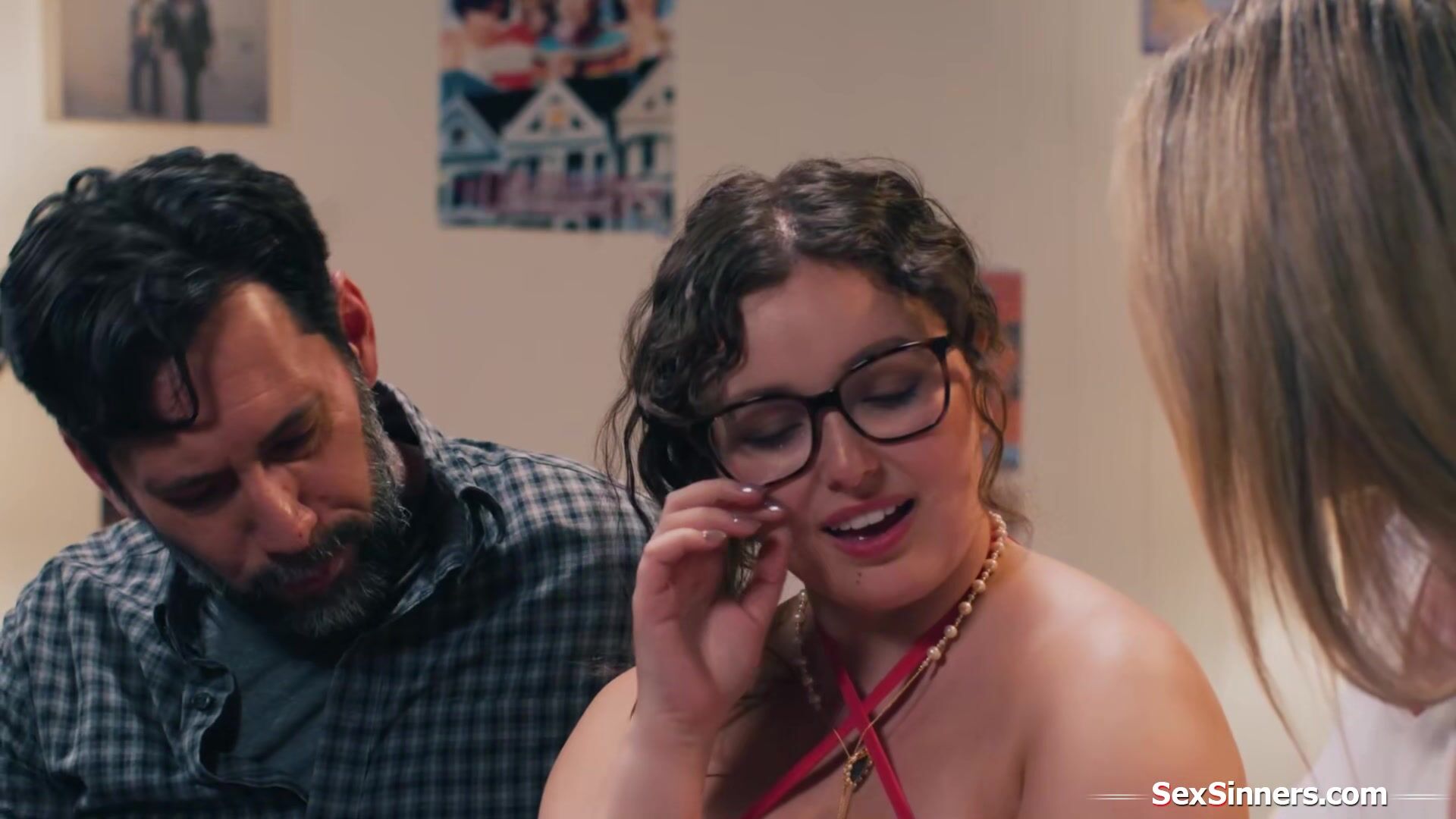Big tits milf Cory Chase and her husband Tommy Pistol seduce their new daughterinlaw Leana Lovings into sex.They masturbate the petite babe and the ladies suck cock.The perv old guy is fucking them both when their stepson knocks on the door