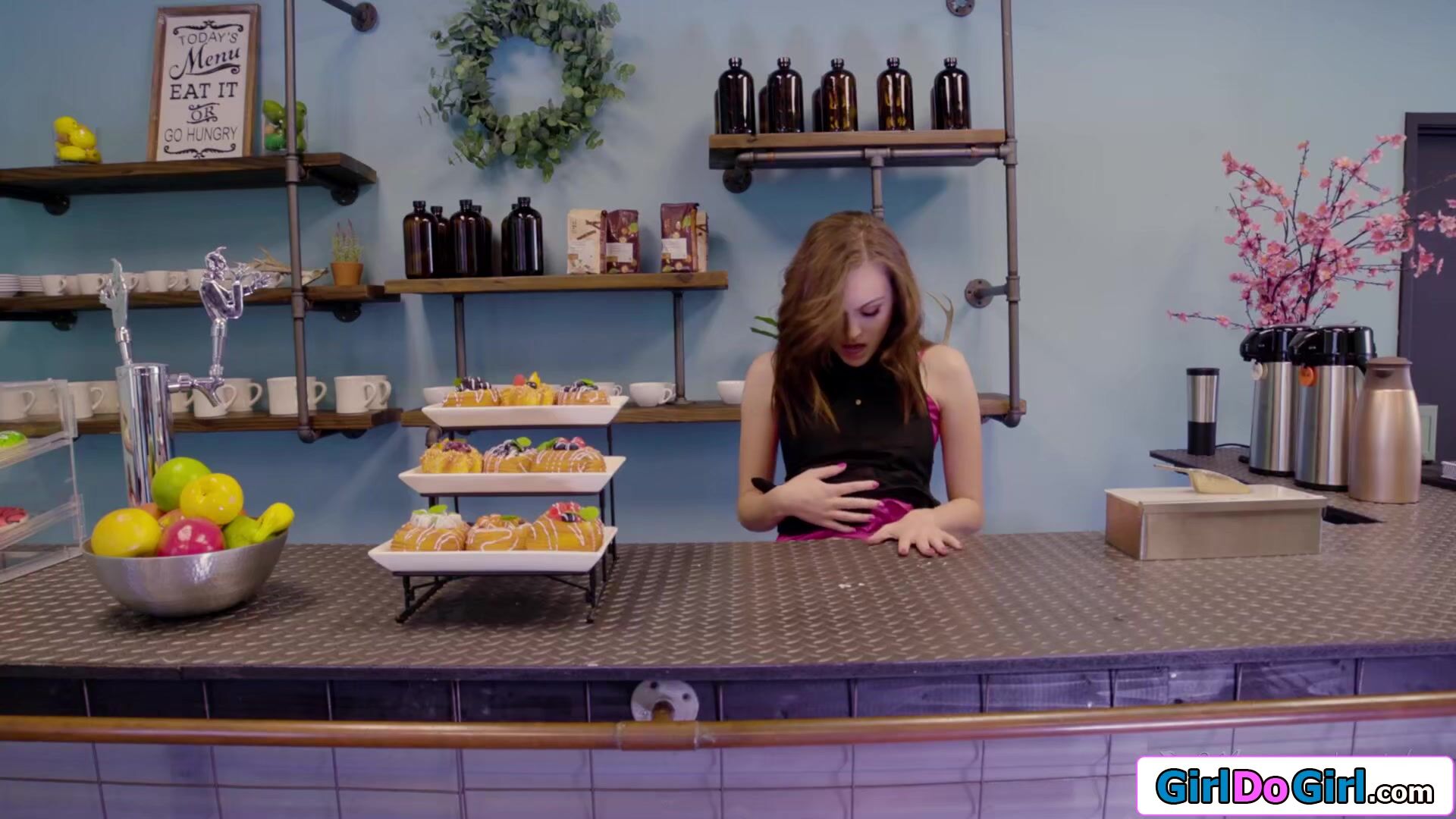 Stepdaughter Freya Parker gets her first lesbian kiss from her busty stepmom Ryan Keely in her cafe.She helps a customer while the milf eats her out under the counter.the brunette is fingered during oral.She licks her stepmommy and sucks her feet