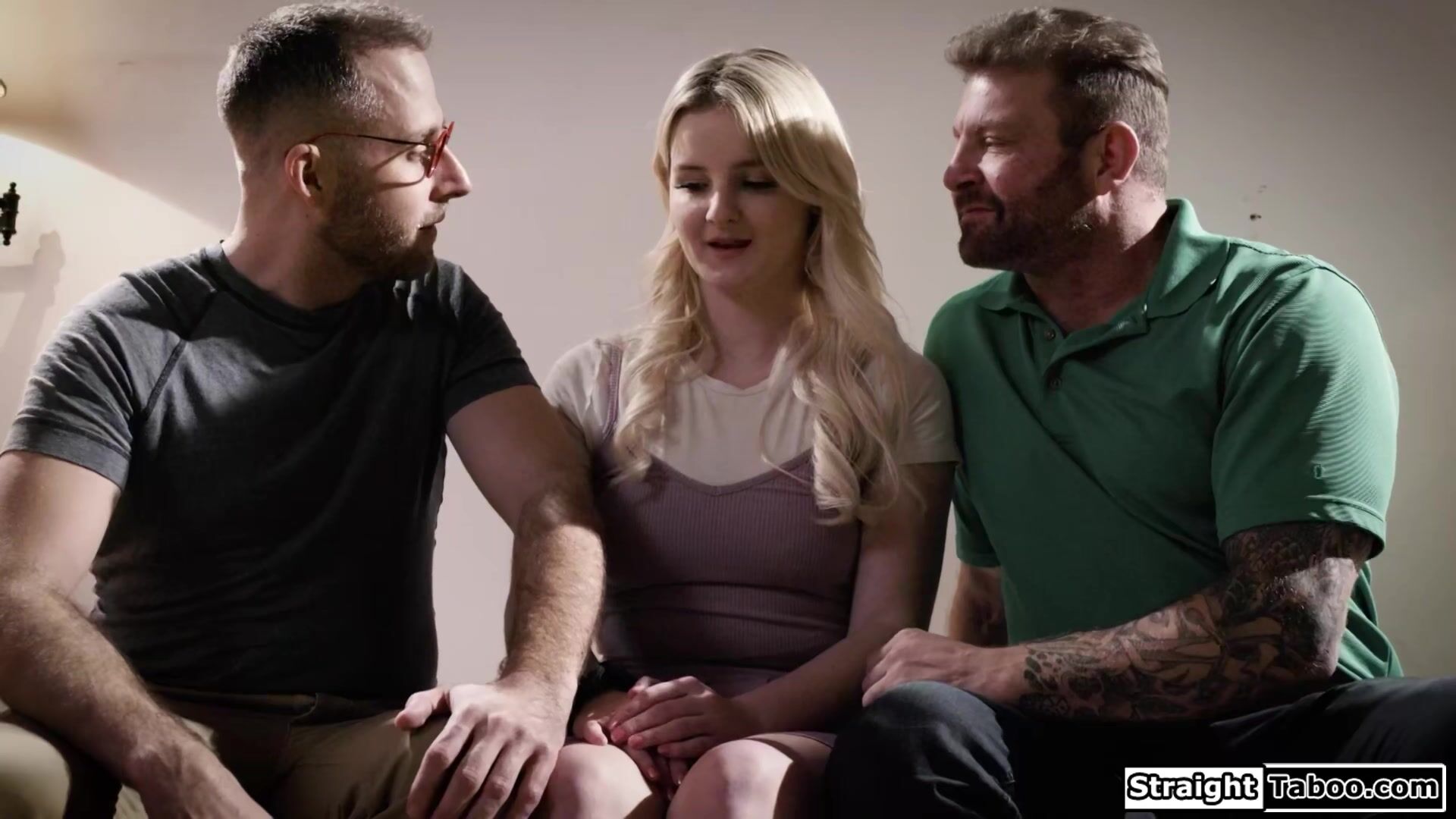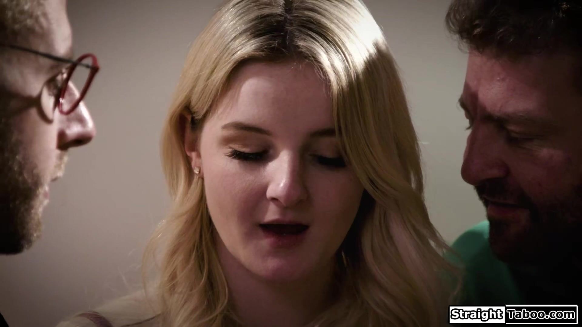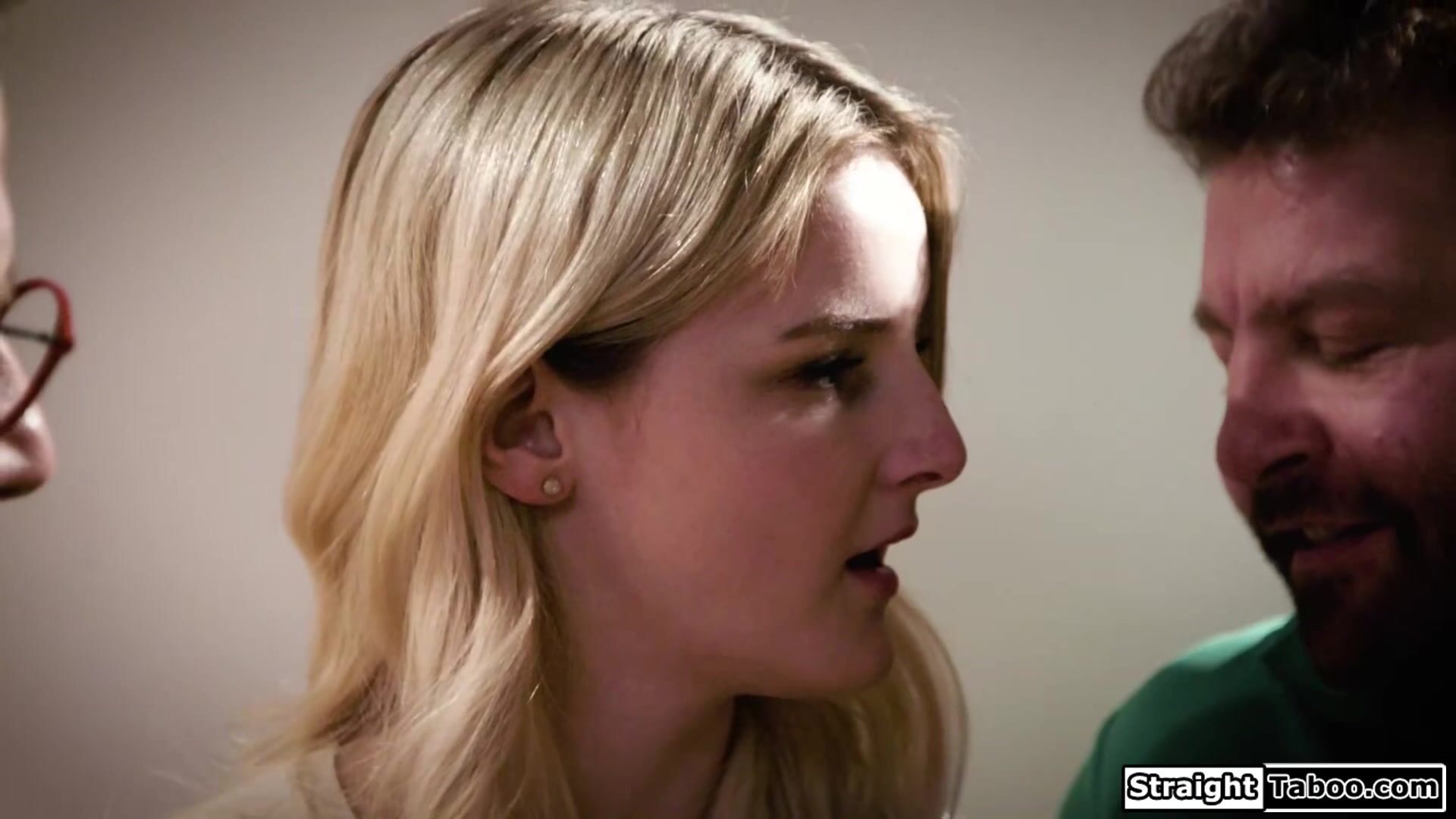Big tits chubby teen Eliza Eves gets uncomfortable when her neighbors start to drop hints.The pervs kiss and deepthroat facefuck the busty blonde.She masturbated and is pussy licked.Then the guys put both cocks up her snatch and double pussy fuck her