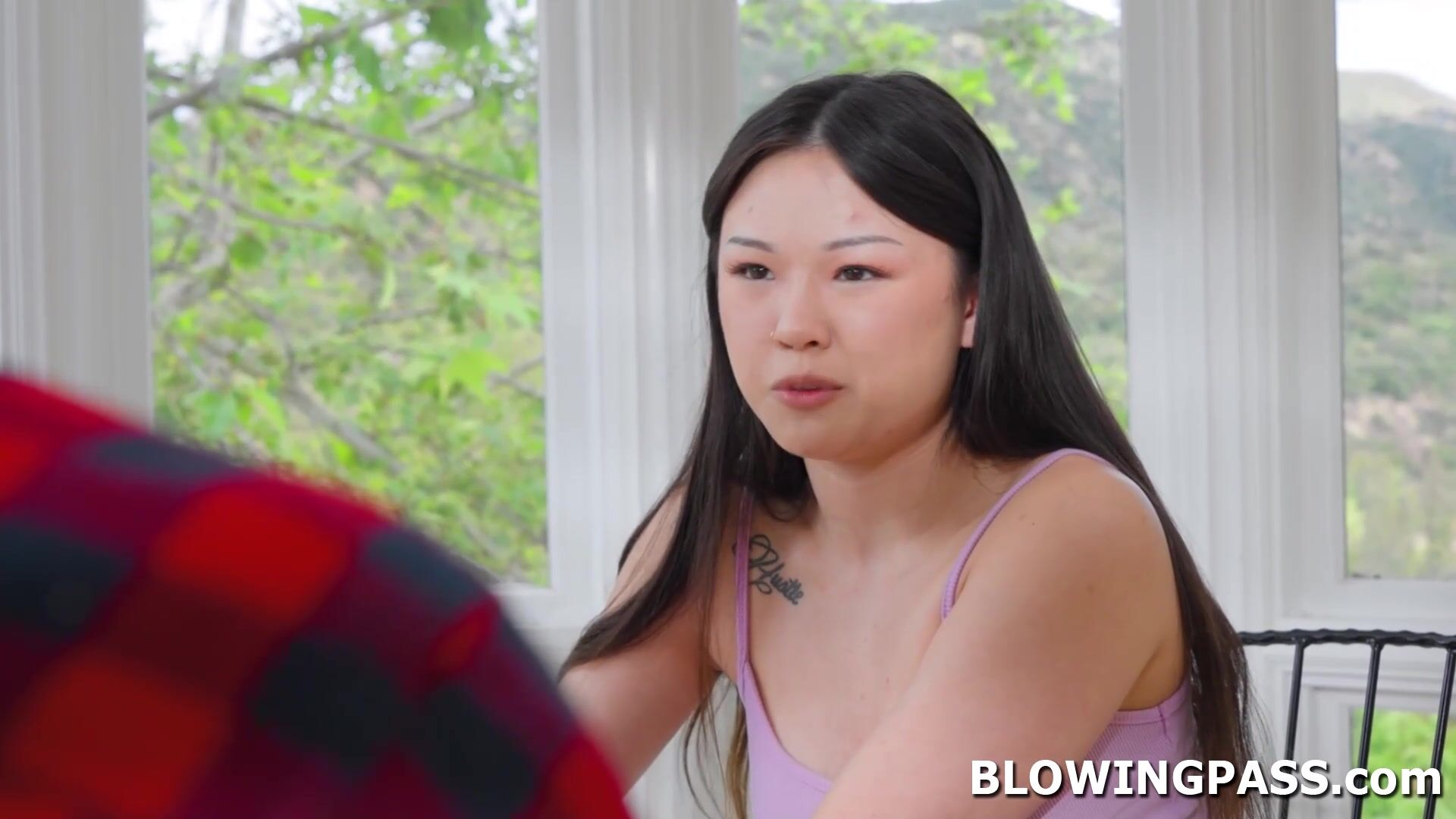 After her tutorial session Lulu Chu asks her instructor if he can help her practice blowjob. The guy didnt see it coming but nevertheless he is down for it. He sucks her small tits then licks her pussy before letting the teen deepthroat his big cock.