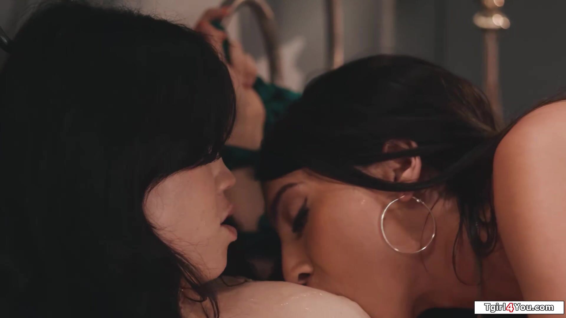 Busty Asian shemale Kasey Kei licks her tied up buttplugged latin gf Yhivis hairy snatch.The petite brunette is fingered before shes deepthroat facefucked by the tgirls hard tranny cock.The big boobs trans babe sucks her feet and bangs her wet pussy
